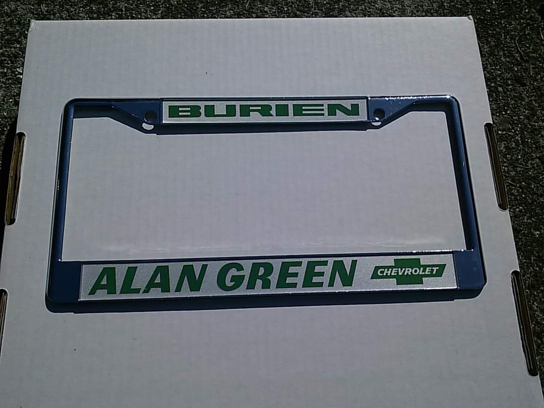 Alan Green Chevrolet License plate. High quality heavy gauge metal license plate with embossed edge. The perfect Day 2 addition. Made in USA