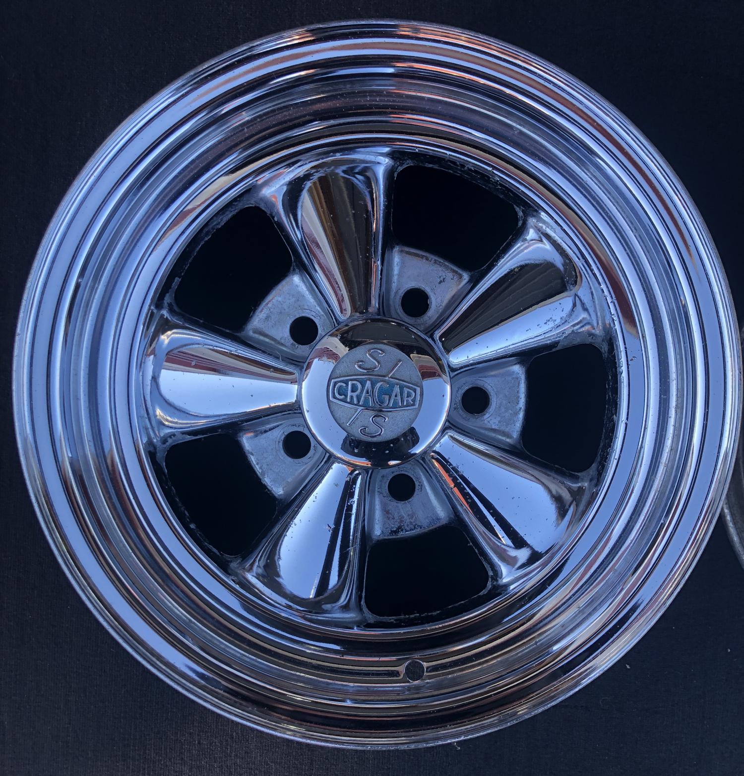 Pair of 1970 vintage Cragar SS 4.75 or 4 3/4 GM direct fit. Included are original “non-R” center caps. $325.00 shipped (insured) to lower 48.