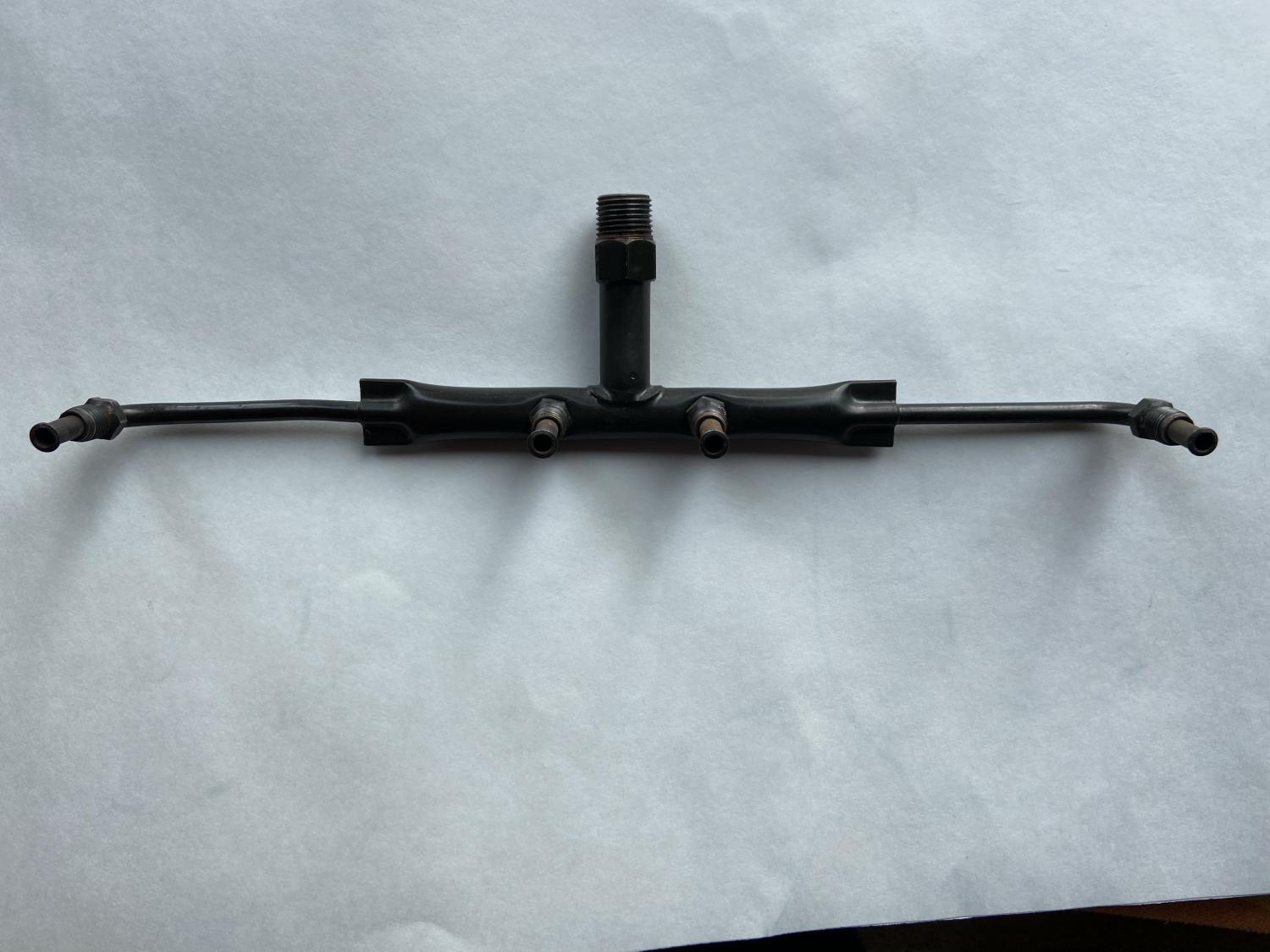 I have had this RH smog tube for many years. This is guaranteed factory original smog tube. Its basically NOS and has the original black phosphate coating on it. Looks kind of Olive colored. I did have it screwed into a manifold at one time just to check the threads on the manifold.