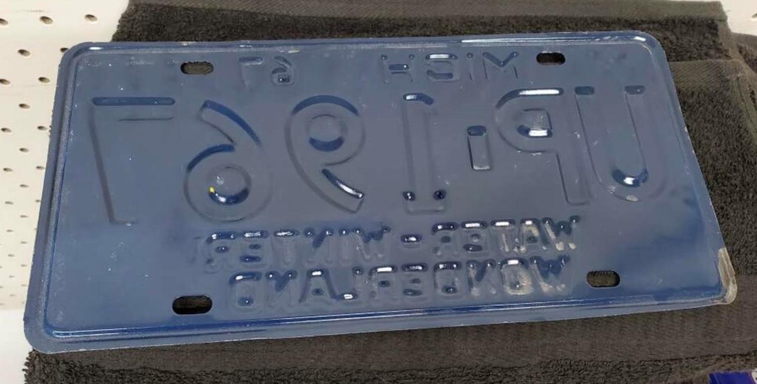 Michigan plate from 1967 with plate number UP 1967. Perfect for a car sold new in Michigan in 1967.
