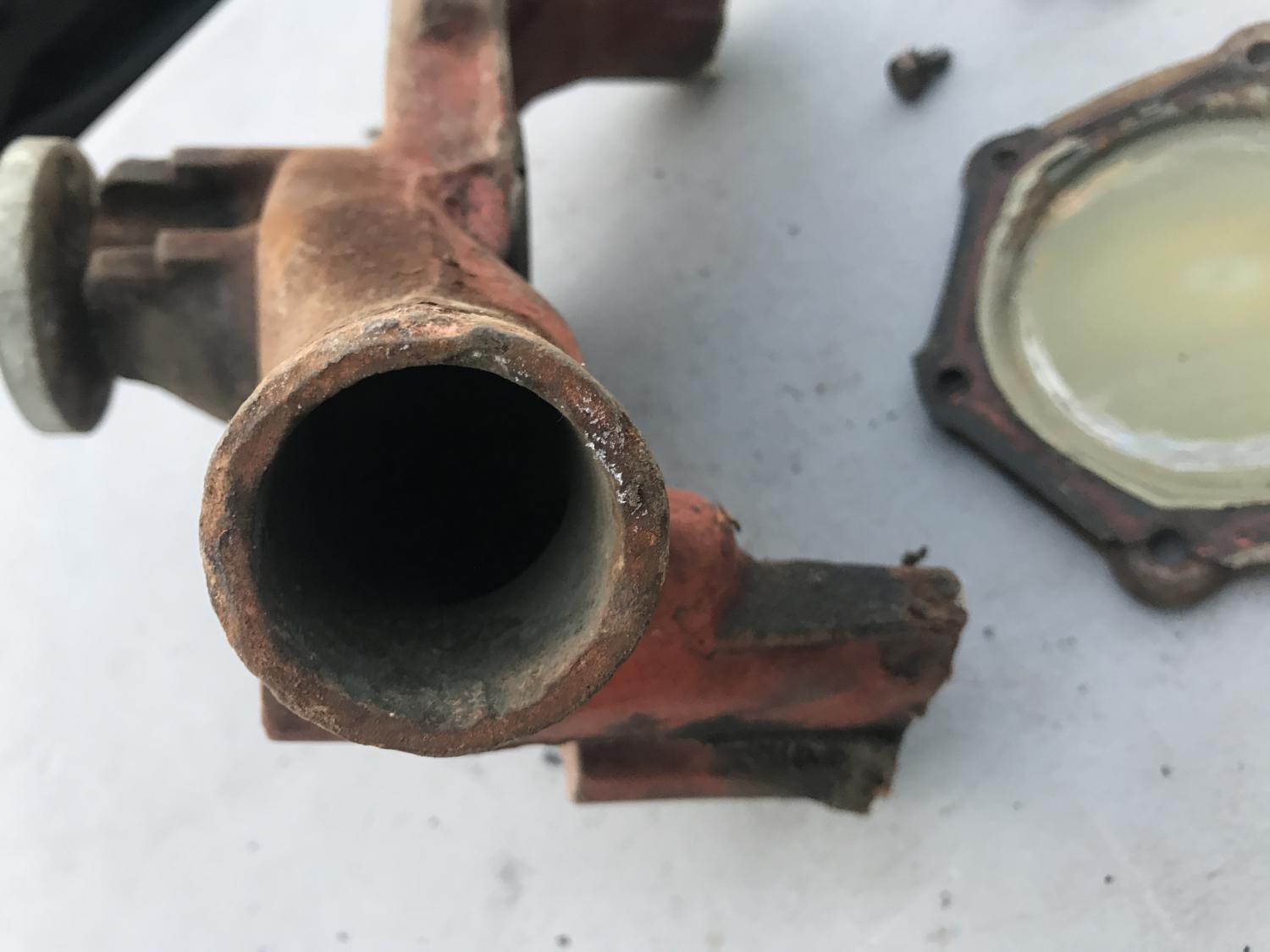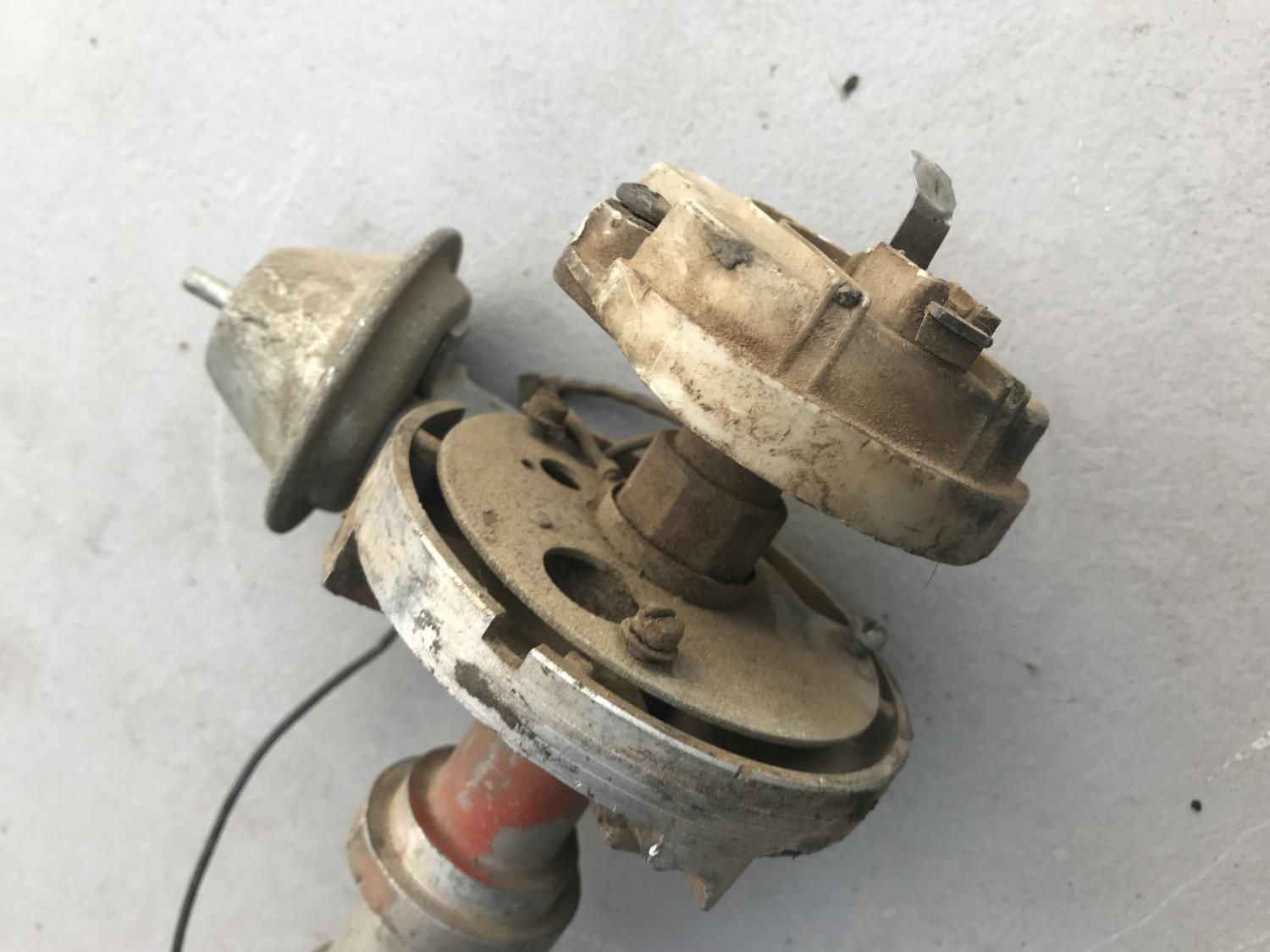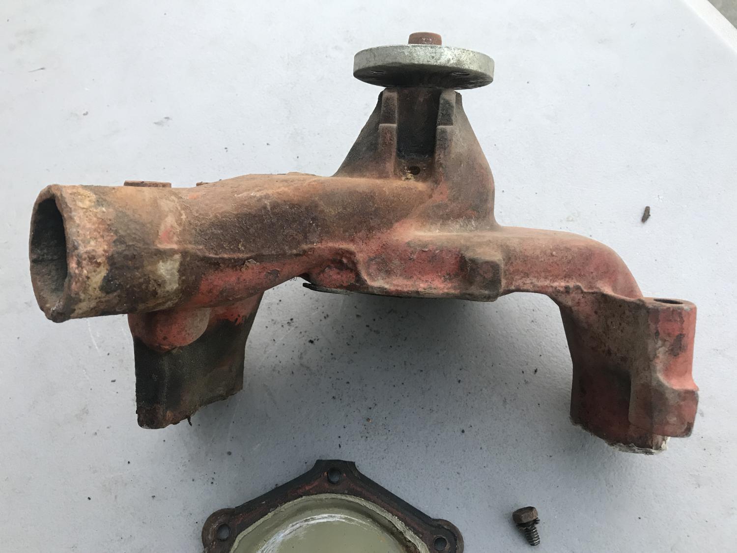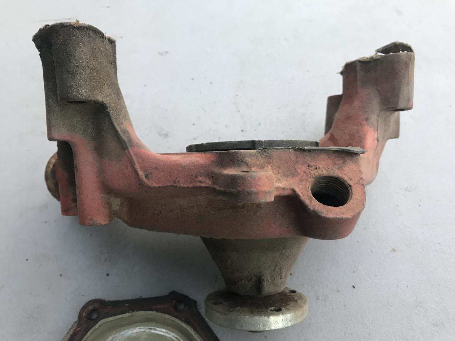 1111489 350 / 300 AUTO distributor with the 526 CCW cam but otherwise bare - replacement vacuum advance, spins tightly. Date 8H21 - Sept 21 68 Next is the early 3927170 / 170 long water pump - definitely a core - front bearing is out and the shaft is loose and wobbles - not sure if repairable - I removed the back cover but can't remove the shaft / internals. original 3923250 cast impeller is there. either piece $50 plus $16 to ship USPS with tracking, $66 PPFF total for each. Email with questions, thanks as always. Anthony |