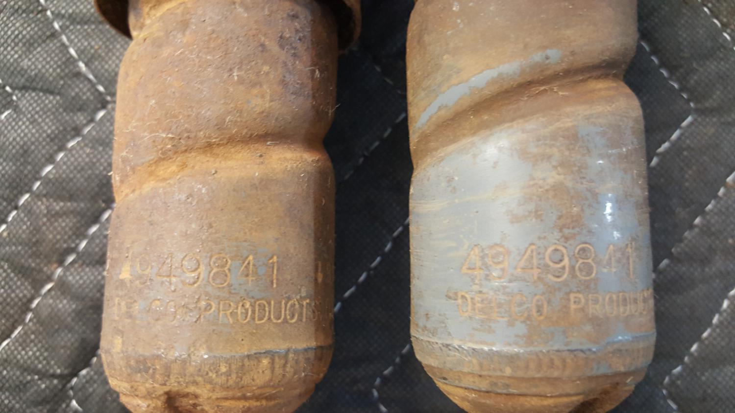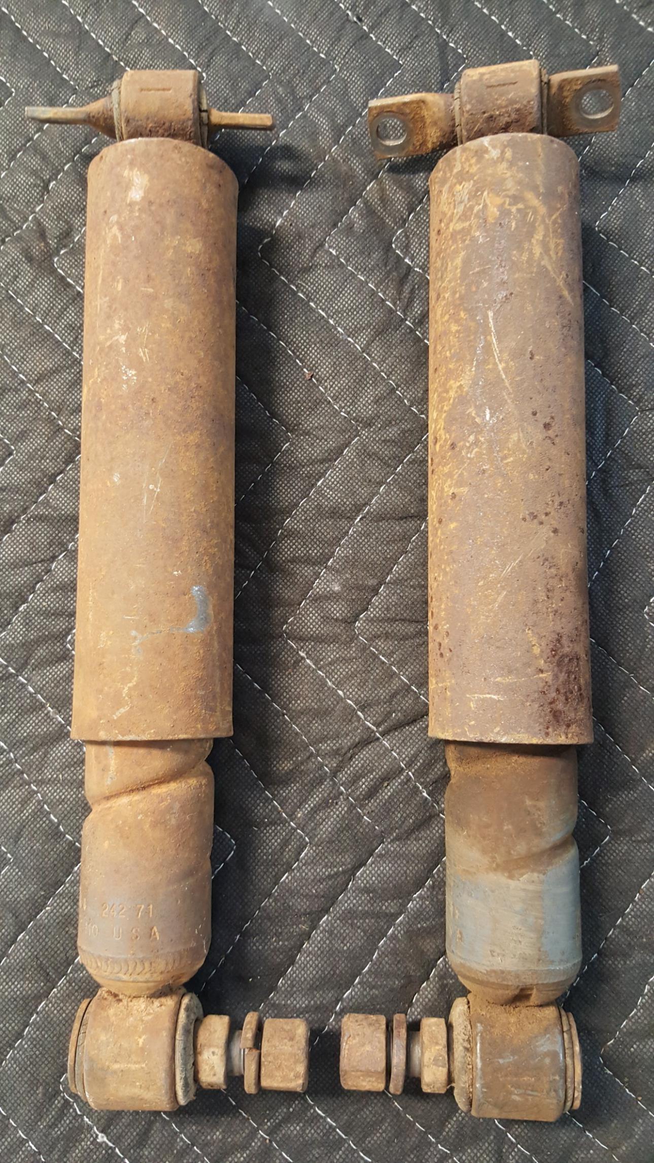 Pair of rear F41 Spiral Shocks GM part number 4949841 Dated 242 71 (Aug 30 1971)