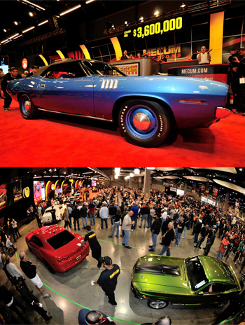 $3.5 million Hemi Cuda convertible going across the block with the wrong (cheap) non - 450 wheels. Note narrow inner band and too-shallow offset which sets the hubcap too far out