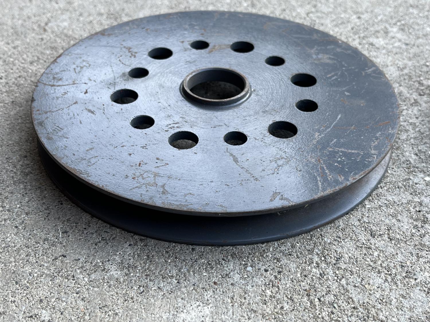 It's identical in dimensions to the famed 3742991 stamped steel SBC SWP HiPo single groove crank pulley... but it's cast iron, and heavy! It doesn't look like it was made in a HS machine shop one day and it's drilled / balanced like I've seen other GM cast pulleys... it's a deep groove, same as the above referenced one. No markings. Thoughts? After market, marine, implement, heavy truck, machinery application?... Thanks in advance, Anthony |