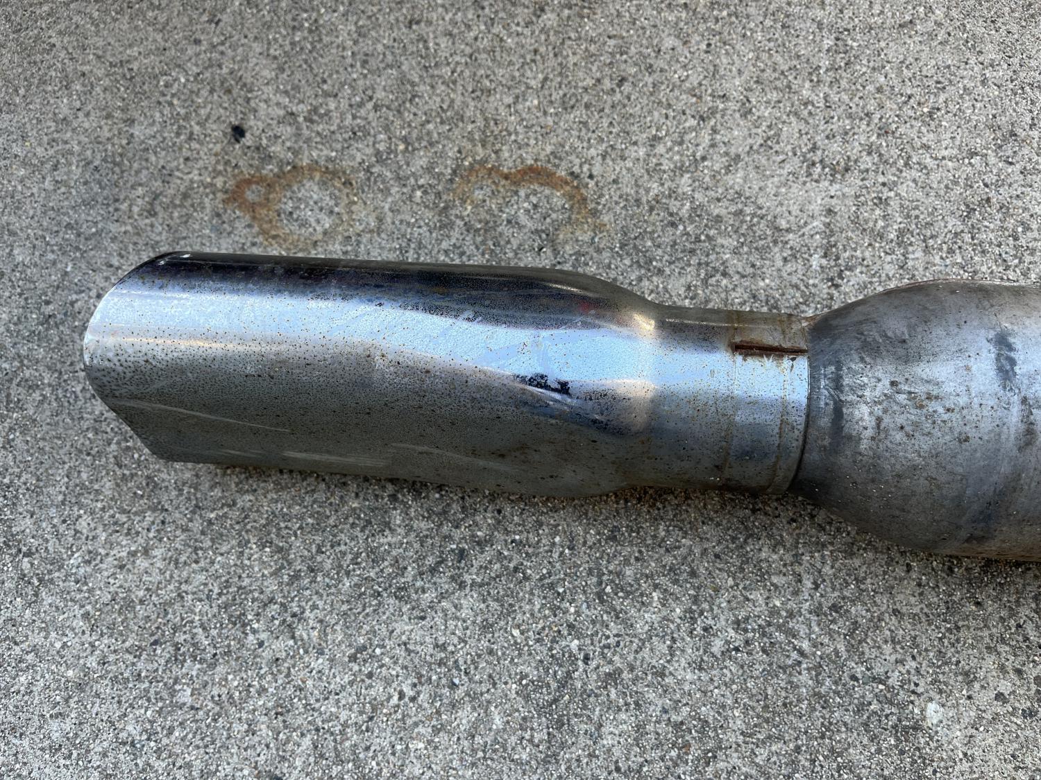 Hi Gang, like the title says, I have a RH factory installed / assembly line exhaust tip (no number stamped) with the 3973858 resonator intact available.  The pipe has been torched off and supposedly it was off a 454 car, but I think this is for any big block application, 396 too. No clamp. Very acceptable condition for a survivor car IMHO and could be cleaned up a bit - weep hole is good and ink part number stamp still visible! Hard to find piece anymore - a great, original unit for an original car. This is clearly an assembly line tip, 3956756; should clean up OK, I've left it as found. See photos. $250 PPG shipped to the 48 Thanks all, Anthony Last edited by AnthonyS; 06-23-2022 at 02:49 PM. |