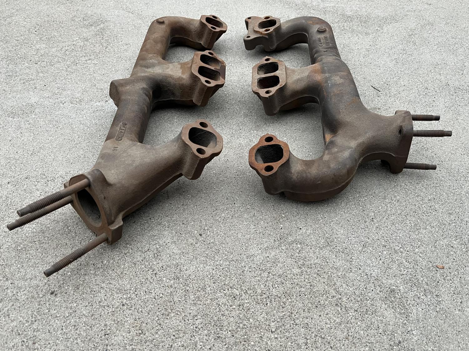 See photos below for the whole condition story; they are very nice, but again, my opinion. Crisp part number castings. Original and very usable studs; these are ready to bolt on. Never blasted or painted or futzed with parts, IMO.