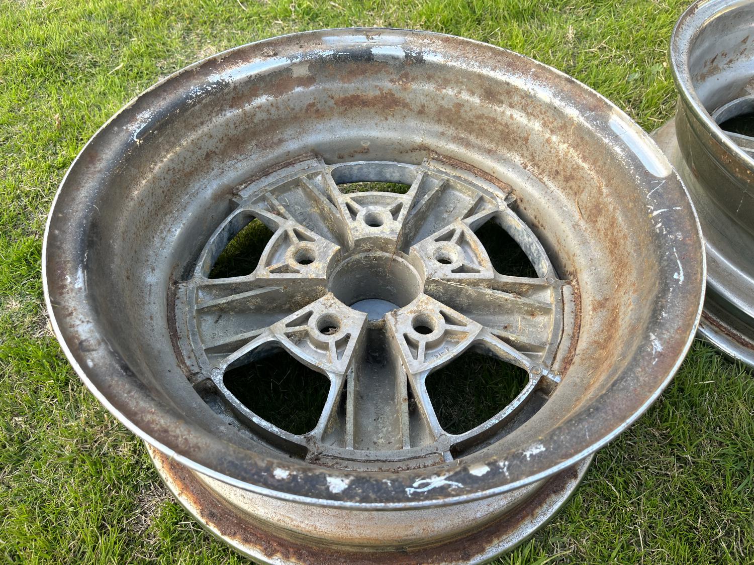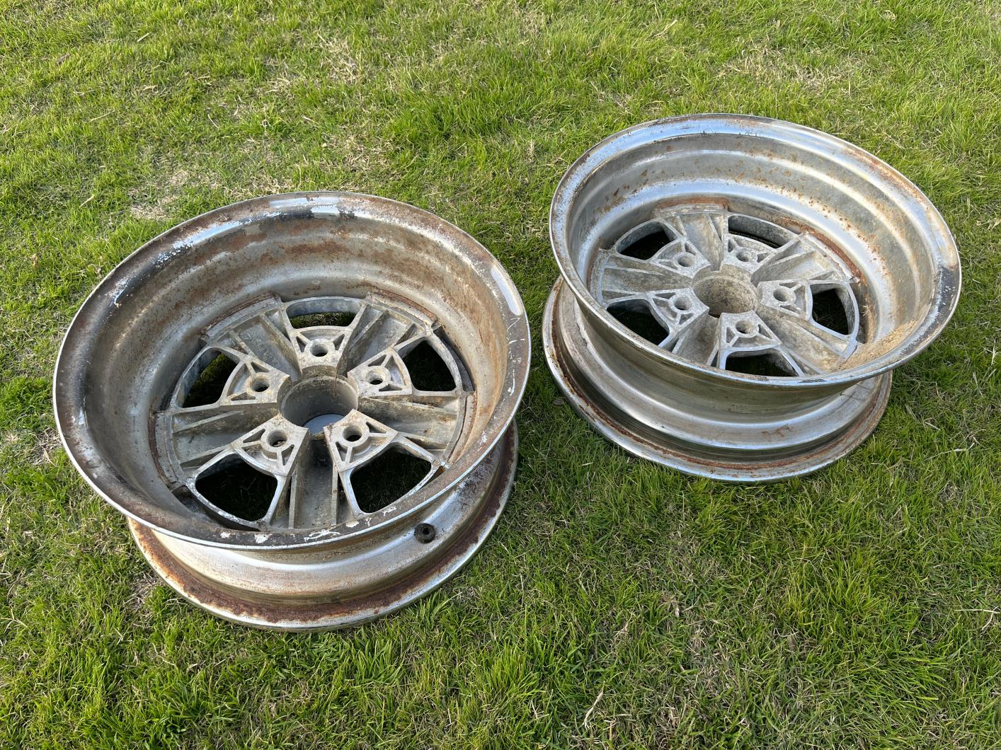 Another rare treat here - I have a pair of original Cragar S/S SS GM 5on4.75 bolt pattern - DIRECT DRILLED - NOT unilug 15X6 used wheels for sale. They are as found and not fluffed (or even washed) at all - they have some surface rust but are not terrible IMHO, and should clean up well for a driver or survivor or a great foundation for restoring these popular Day 2 rims. The original so-called no R" caps are still attached. Backspacing is 3.75" I removed the old rotted Goodyear Polyglas F70R15 off of them today. They have been sitting decades but as stated, should be very serviceable. Hard to find anymore! Many detailed photos below for the whole picture. 600.00 PPG plus shipping. Cheers all, Anthony |