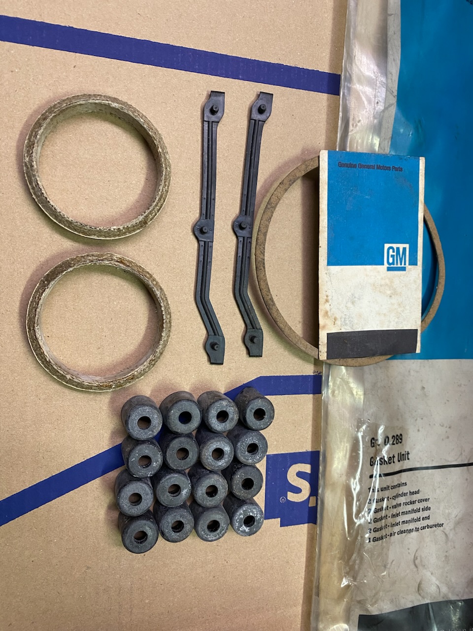 Pretty cool find, original square port 396 top end overhaul gasket set. The carb gasket is missing but everything else is there, see pics. $250 plus $20 to ship or reasonable offer.