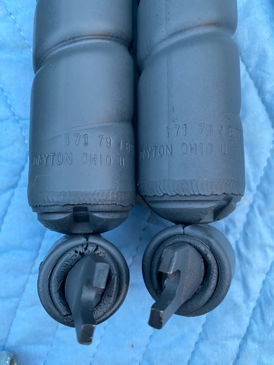 Set of four shocks that I purchased here a few years back but decided to stick with Day 2 for all my Camaros. These are obviously not all date correct but I was told they were (and they appear to be) a bolt-on for 68-69 Camaros (and were removed from a ‘68 show car). I’d like $150 plus the ride which I think is what I paid for them. All have some resistance moving up and down but it’s inconsistent, so I’m selling these as showcar parts and I’m recommending no one drives with them unless they are rebuilt. See pics below-