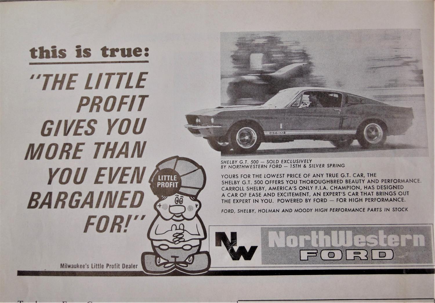 Maybe the first Cobra ad ever? Looks like Job One in Mooneyes yellow with Shelby 'hisself' behind the wheel.