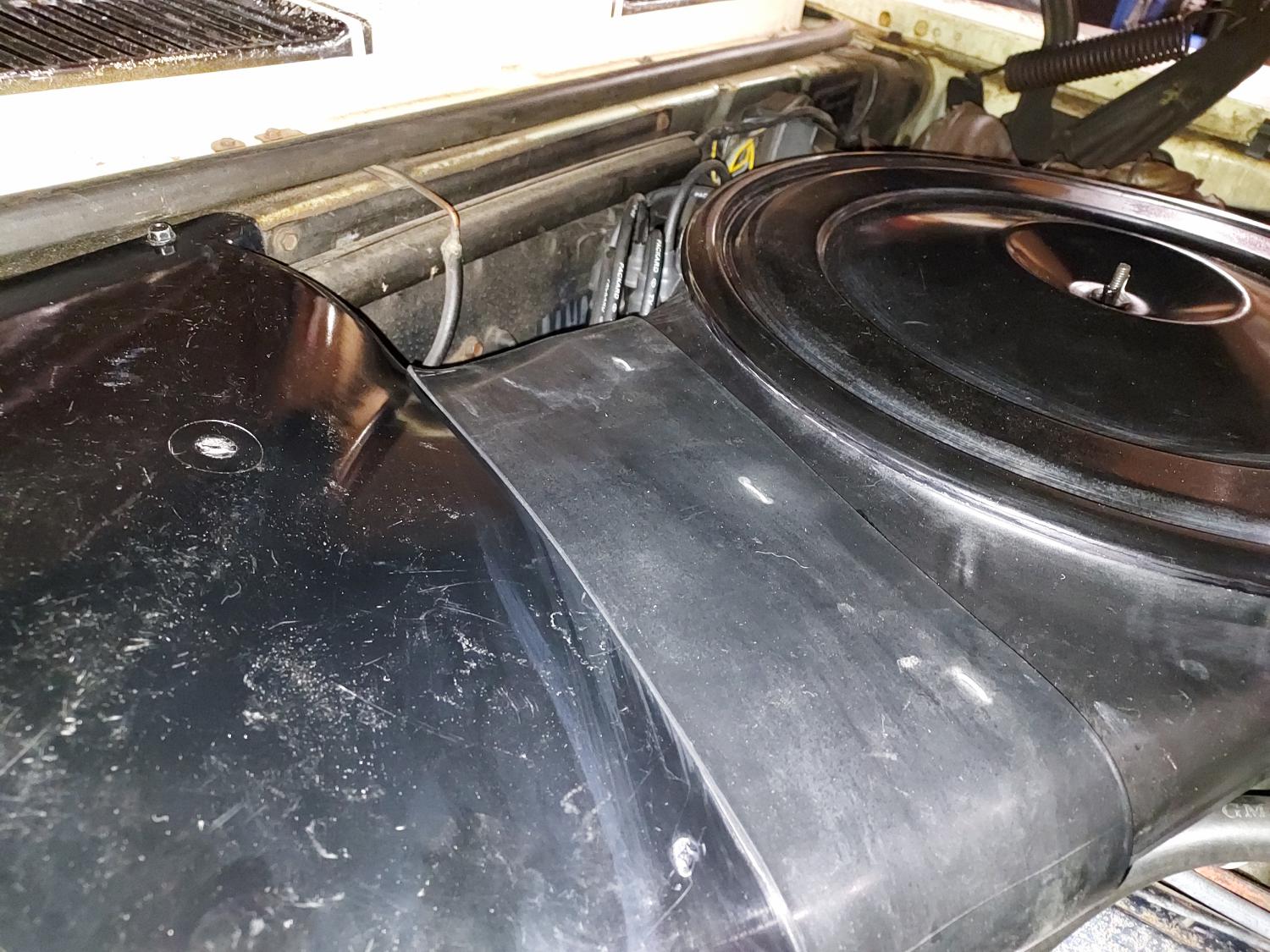 Well, I dug out all my parts. I ordered a boot. And decided to see if I could make it happen. Been 8 years collecting parts on and off. Set it on for a dry run and it sat WAY up at an angle. Smog tube hose in the way. Removed the right-side smog tube assembly. I had one with a 90 on it. So I installed it with the valve, and to my surprise the original hose was long enough and fit. The hose cleared the air cleaner body. JUST touches, doesn't hold it up. It looks kinda normal factory. I temporarily screwed down the duct and lined some things up. From under the hood. The hole in the fire wall was existing and too far to the right. If I slide it to the left where it fits better, there is an open hole on the right. So I left it there. Not excited about patching the fire wall and such. So that's that.