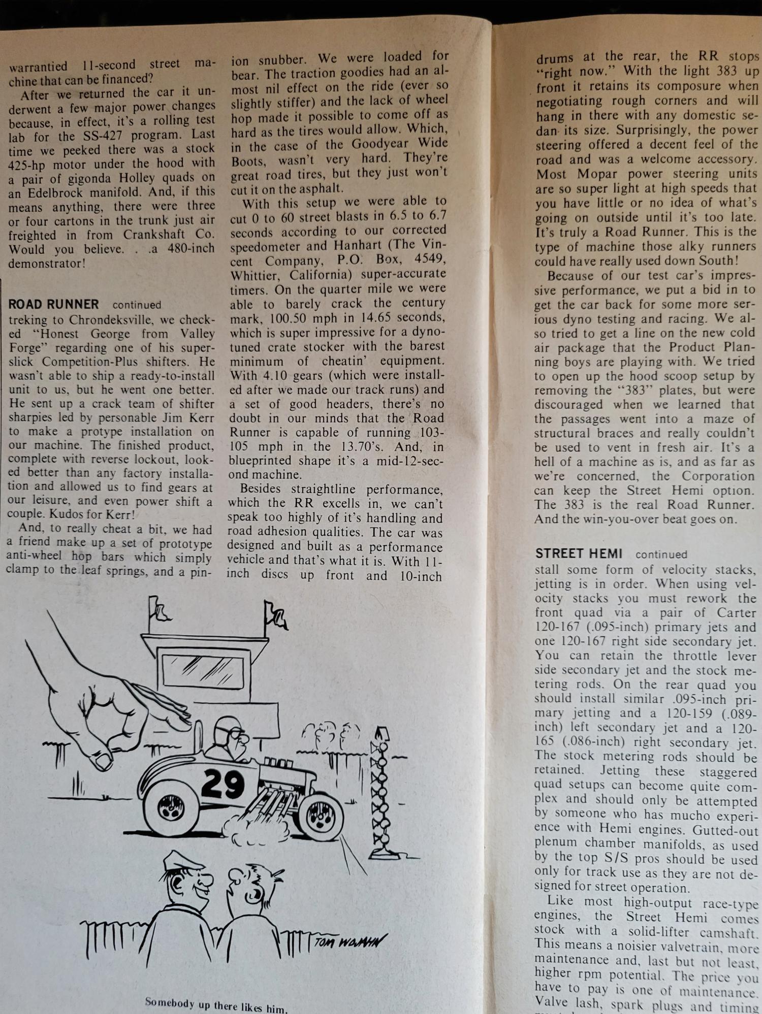1968 Plymouth Road Runner Road Test, Hi Performance Cars March 1968