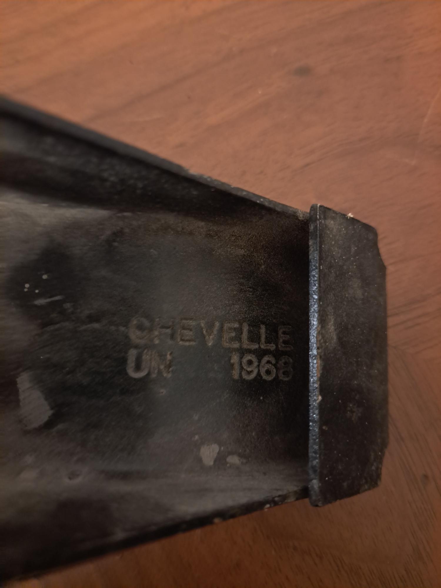 I have for the parts listed below. All prices include shipping. All of the bumber jack hooks need to be blasted and painted. Thank you 1. 1968-72 Chevelle center console shifter indicator top plate. The plate shows wear. The lense needs to be replaced. Part # 3919906 $45 2. 1968-69 Camaro horseshoe shifter. The shifter has seen better days but is all there. Needs restoration. $50 3. 1972 Corvette big block short water pump. Part # 3992077. Date code K 24 71. I had this water pump on the 427 in my Beaumont but removed it when I installed an aftermarket Stewart pump. It has been sitting for a few years so it may need to be rebuilt. SOLD 4. 1966 Chevelle/ChevyII bumper jack hook/load rest. SOLD 5. 1968 Chevelle bumper jack hook/load rest. The metal has pitting. SOLD 6. 1970 Monte Carlo bumper jack hook/load rest. The metal has pitting. $25 7. 1972 Chevelle bumper jack hook/load rest. $30 8. Bumper jack bases. I have no idea what vehicle or year these bases are for. $25 each