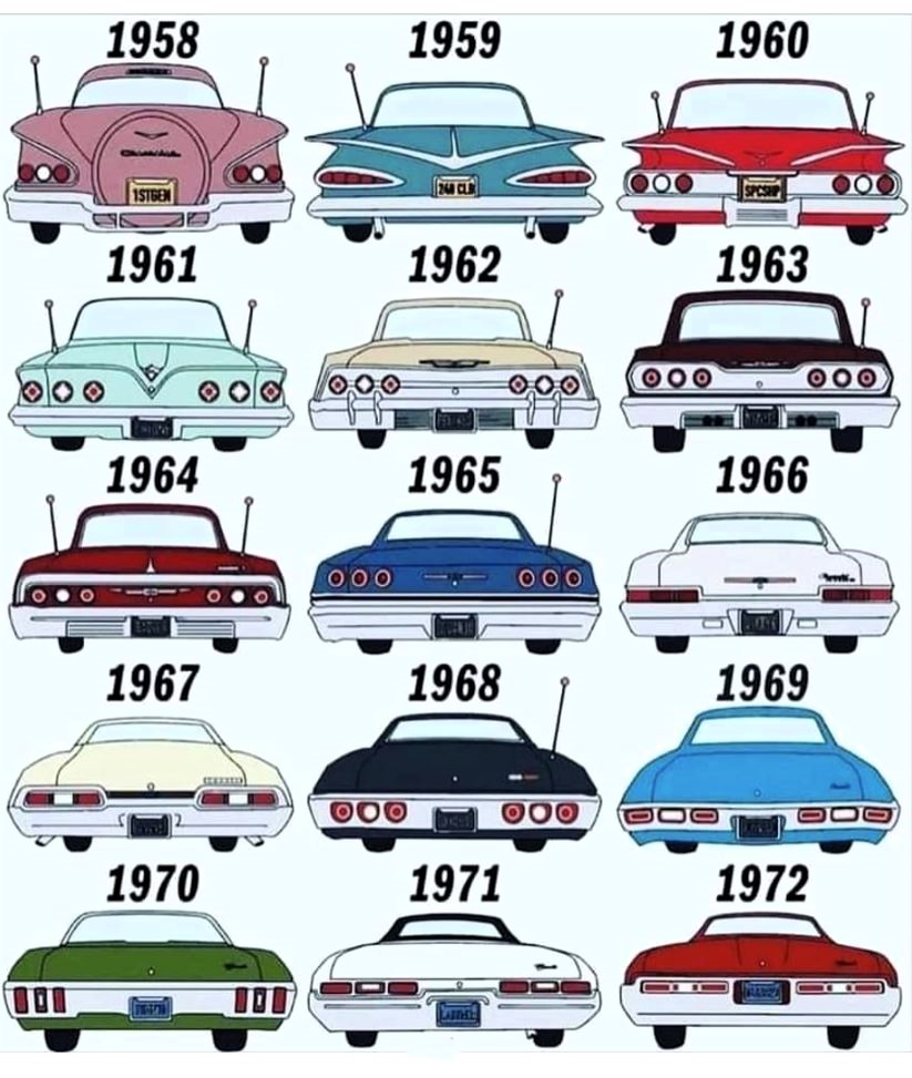 If you look at '54 vs '55 vs '56 vs '57 vs '58 and then on to your chart: Major sheetmetal (and sometimes architectural) changes EVERY YEAR. Now it takes us 5 years just to change the grille design. K
