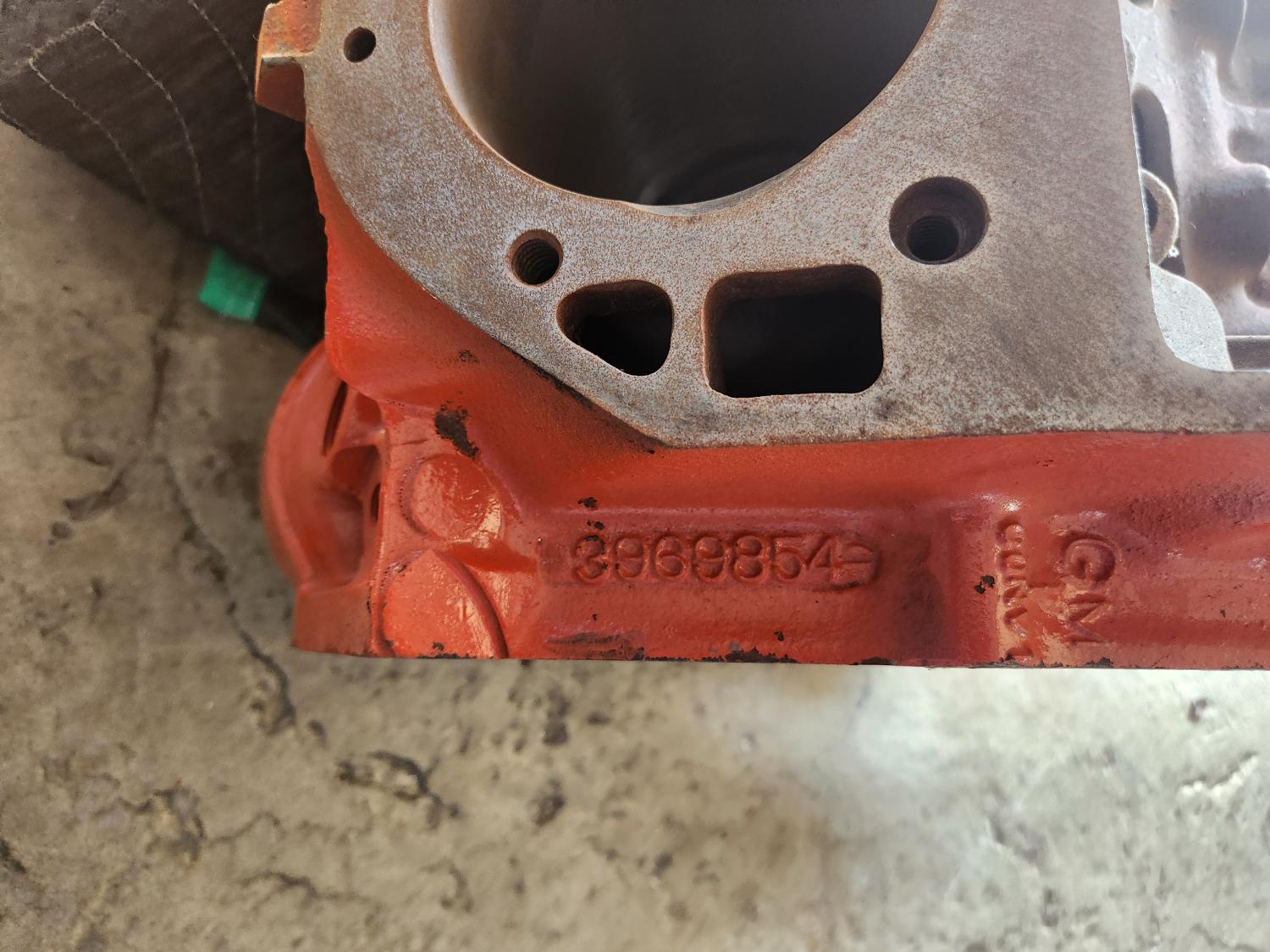 1969 396 4 bolt block casting number 3969854 dated F-11-9 and stamped T0616CKO with no vin on the pad or down by the oil filter that I can see. Block was cleaned and magnafluxed and bored .070 ready for the final hone and is a 4.16 bore $1750.