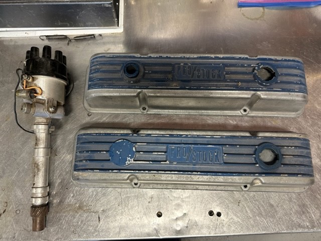 Mallory twin point mechanical tach drive dizzy and a nice set of cast alloy sbc covers.