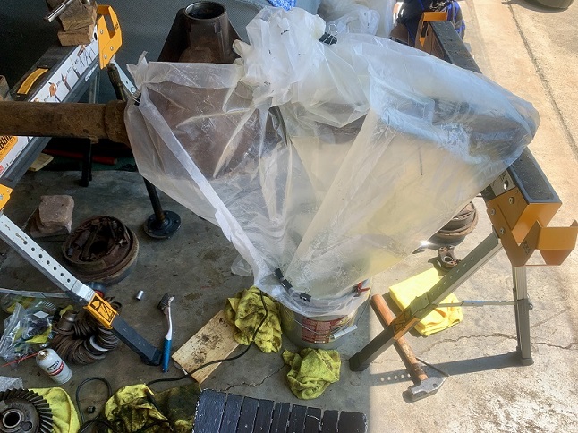 Drug out the ole evaporust and setup a quickie bath for the diff. Slow going process at this point before I get back into reassembly.