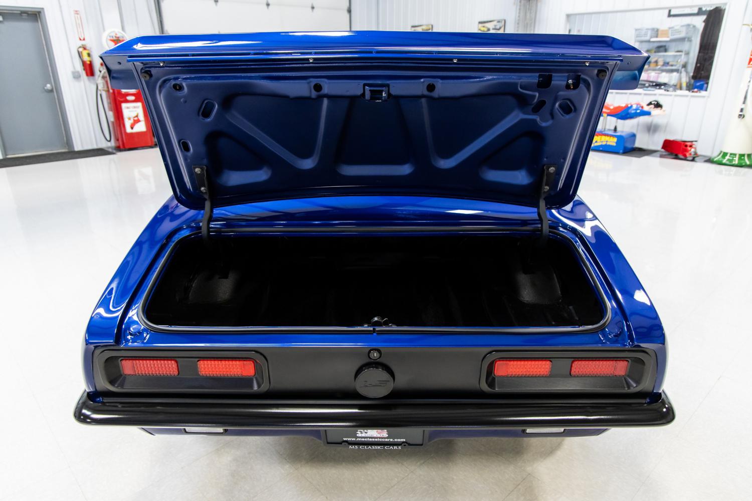 The exterior of this car has a serious presence and makes a serious statement. It's offically the meanest looking classic car ever offered from the MS CLASSIC CARS Collection. The body was taken to bare metal and prepped. It was setup with a cowl hood and rear spoiler. It was painted in Candy Pearl Midnight Blue which is stunning. The paint was recently detailed to a high finish by the team at MS CLASSIC CARS. Everything on the exterior was replaced new including all the glass which is tinted. The glass trim, wiper arms, front bumper, parking light bezels, rear tail panel and tail light bezels were painted semi-glass black. Some of the custom semi-gloss features include Ring Brother mirrors, RS front grill, Detroit Speed Engineering RS hide-away electric headlight covers, Eddie Motorsports billet door handles, LS embossed gas cap and Eddie Motorsports billet taillight assembly. It's equipped with Holley Retrobright LED headlights and LED tail lights. It was dressed with custom ordered Forgeline Motorsports GA3C Concave wheels that have a graphite center and black lip. The wheels are 18x9 on the front and 18x11 on the rear. The wheels are wrapped with Toyo Proxes R888 tires that are 245-40-18 on the front and 335-30-18 on the rear. To accommodate the massive rear tires the car was outfitted with Detroit Speed Engineering mini tubs.