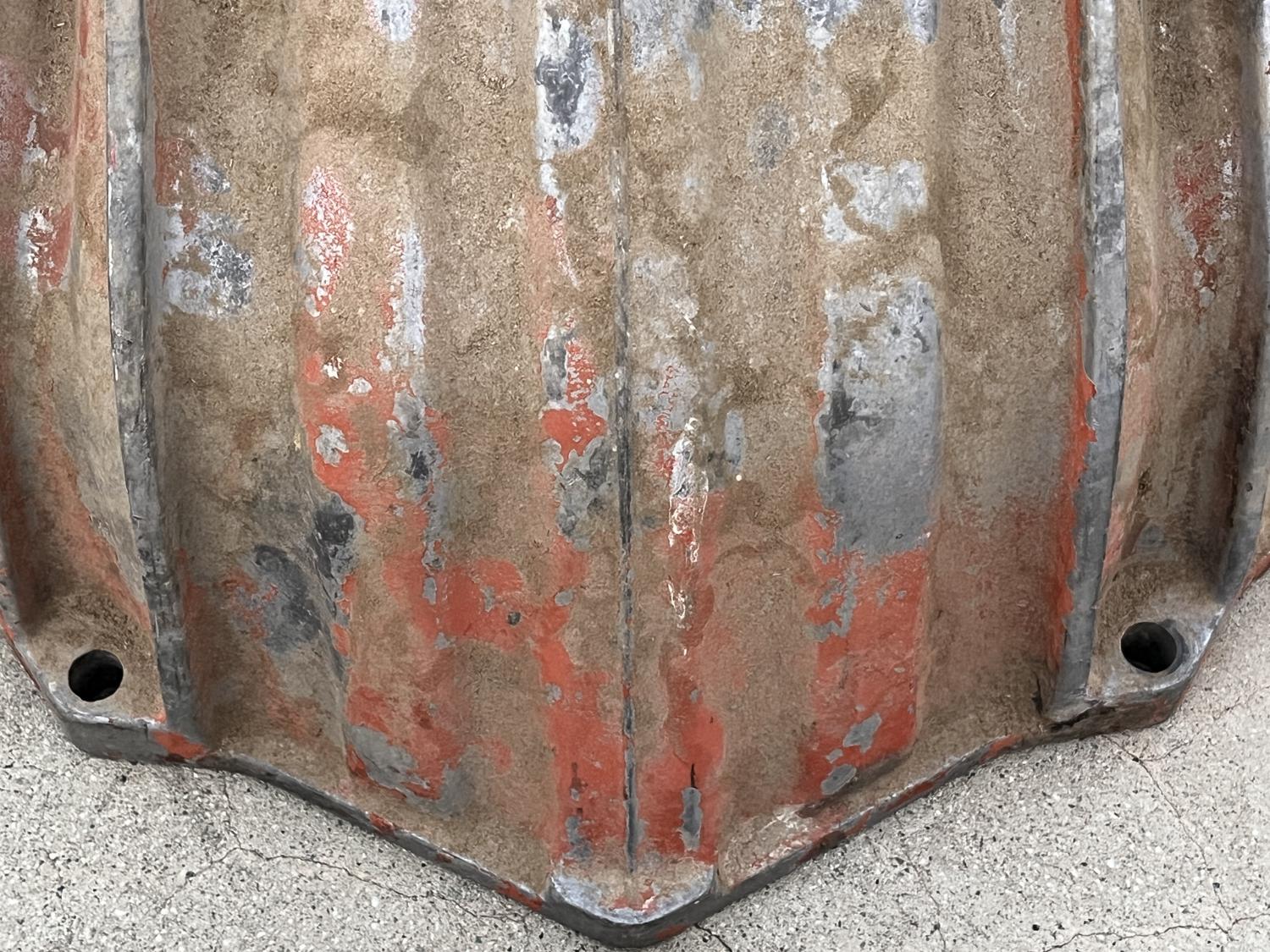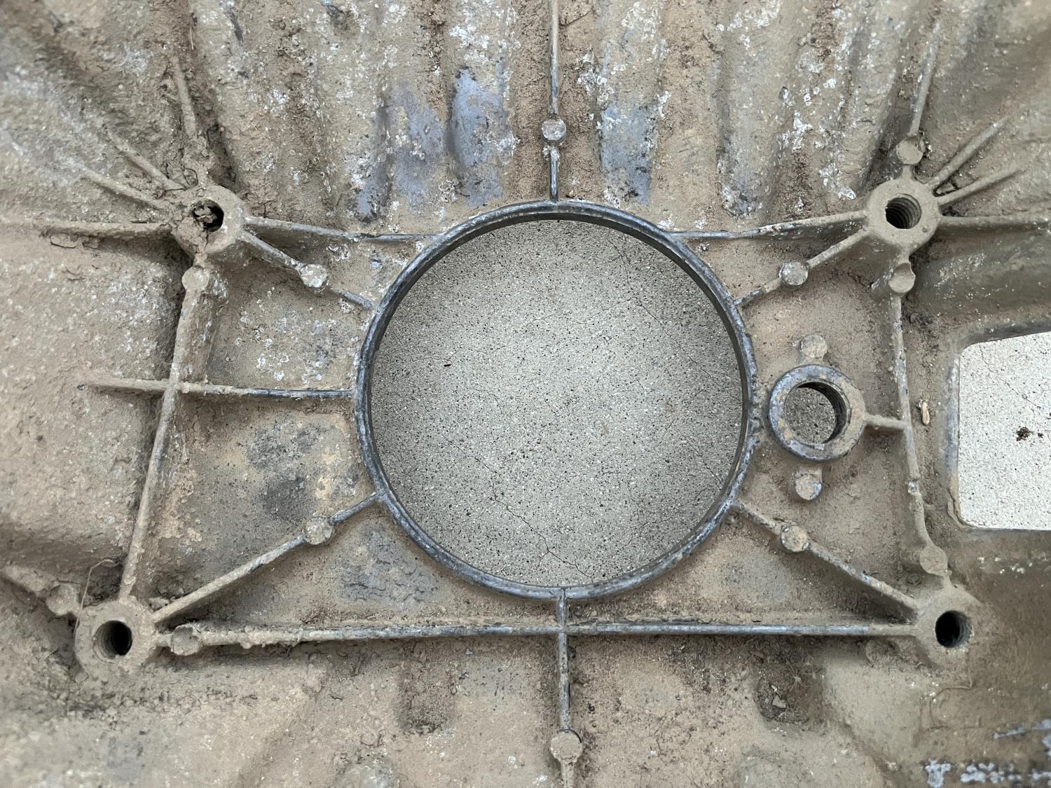 A nice piece not often found in original condition anymore and a perfect start to restore or use now after cleaning - bolt holes all look good and threads and tabs - includes the transmission mounting big bolts and lock washers as shown.