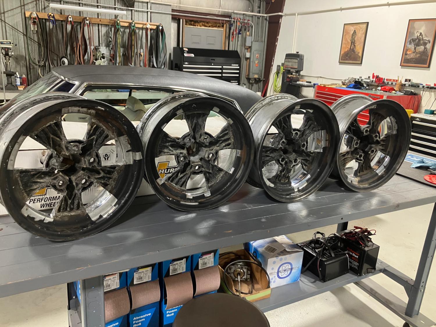 Complete set with center caps, they have the standard chrome rust, please look carefully at the pictures if you want to see me DM me. Local pick up is preferred but will ship in nice wheel boxes at buyer expense. These would also make a pretty cool front runner, $600 located in Joliet IL thanks Dan |