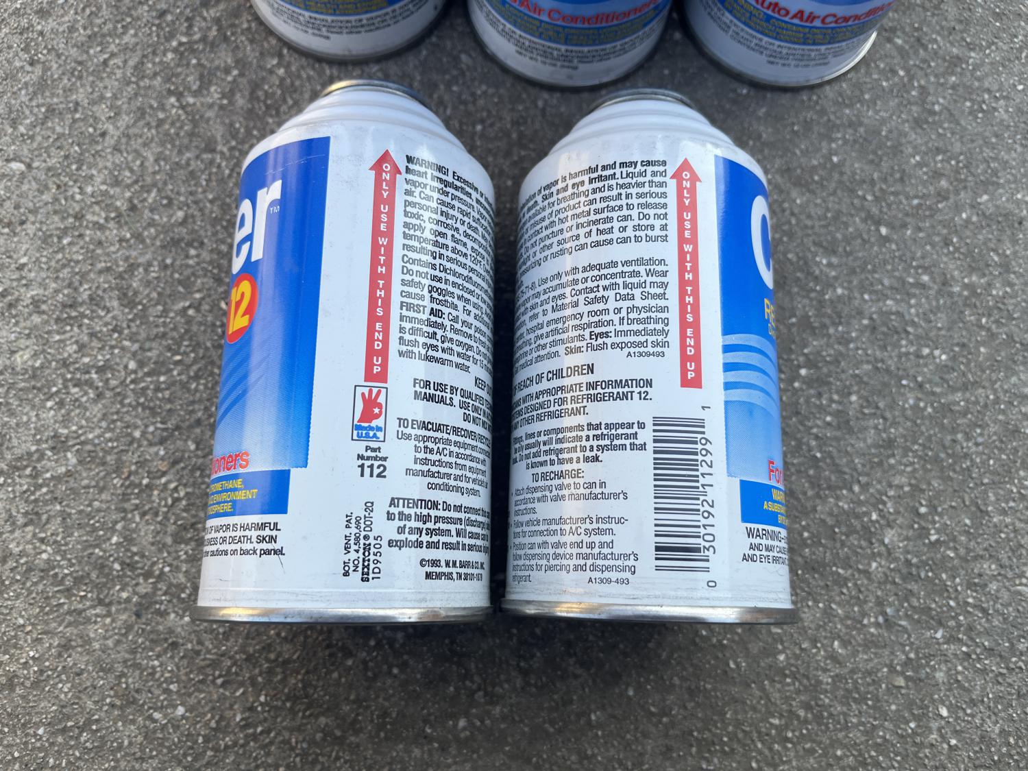 Hi Everyone, I have a full case of NOS R12 freon cans available - must be shipped ground. This is a recently opened case of twelve (X12) 12oz cans - REAL R12 - COOLER brand Refrigerant 12 - Dichlorodifluoromethane (CCl2F2) Total of 144oz which is 9 pounds - plenty to do any one full system with a generous amount left over - not sure if you could fill two systems with this amount. Not getting any easier to find this stuff. And it works well, as we all know. And please remember, by law, only trained & licensed professionals should deal with working on, evacuating, and or filling R12 systems - for the sake of the planet, and to help offset our likely significant impact otherwise... Cheers all, Anthony Last edited by AnthonyS; 01-20-2025 at 04:34 AM. Reason: typo |