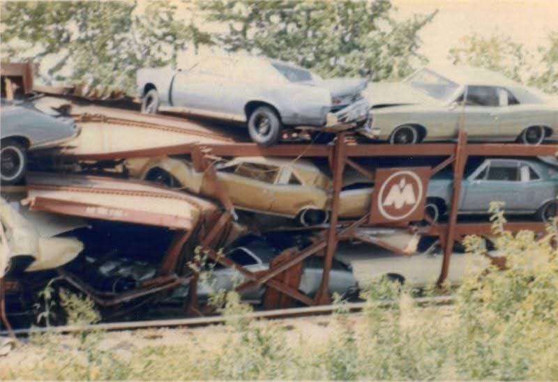 The above photo and several more wrecked rail cars with Pontiacs were posted in the Pontiac section (Vintage GTO photos) post #261.