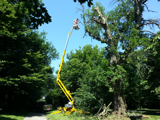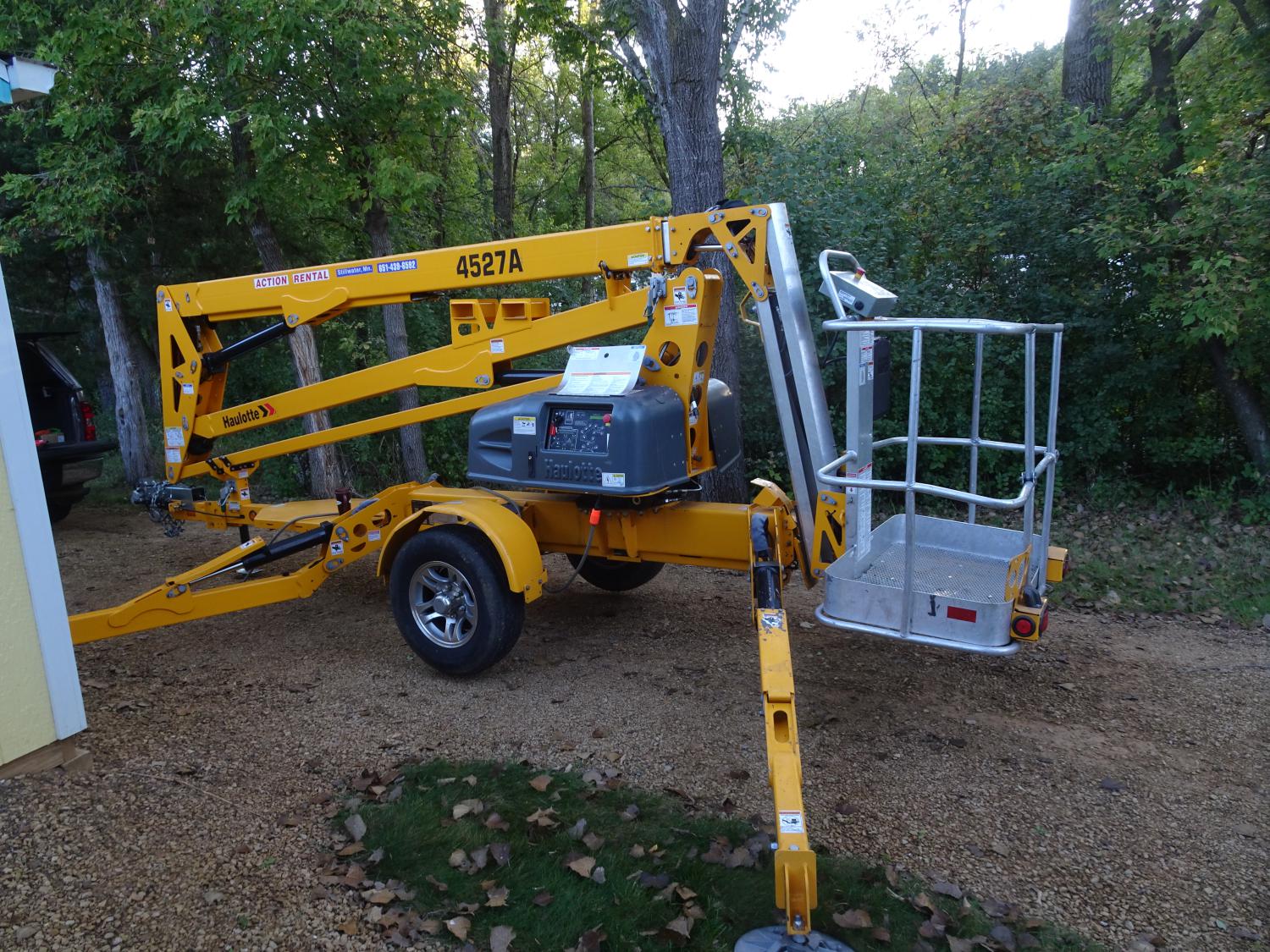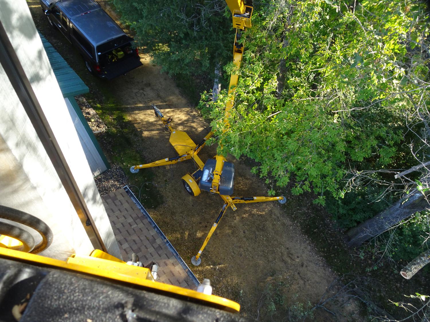 What did it cost to rent the lift? It is not good to have any trees near a building they will come down someday.