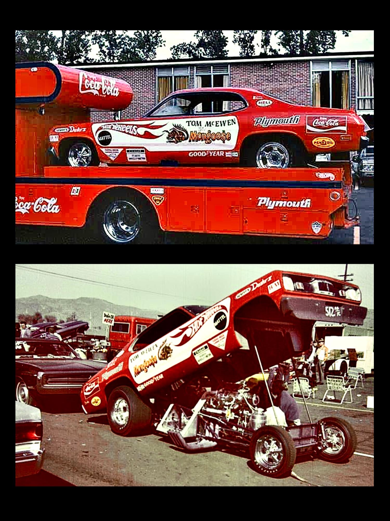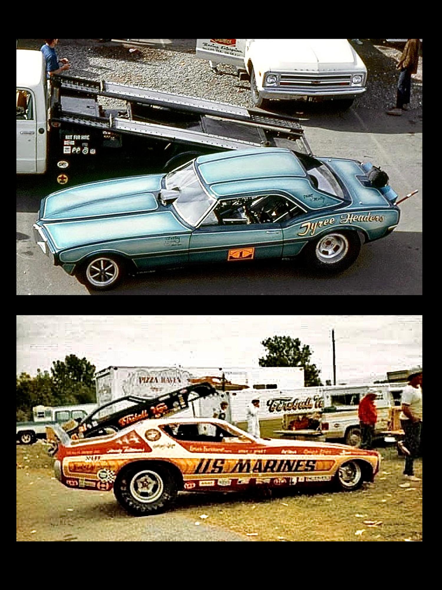 Sorry some are a bit fuzzy but here’s more including Big Daddy and Snake Prudhomme also first, another w/ Roger Lindamood’s Color me Gone’ Challenger for Bill also a White Bear Charger for Mitch.