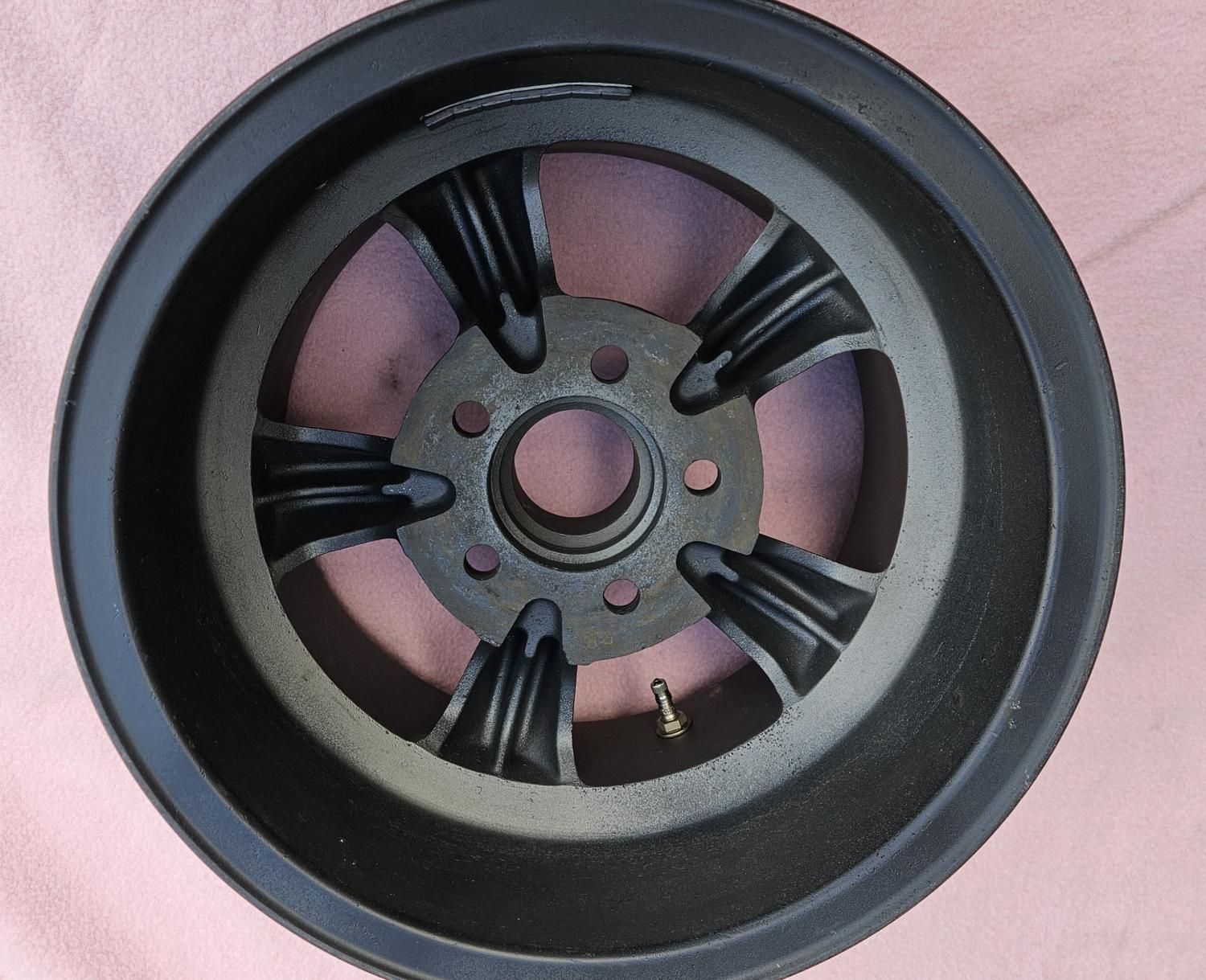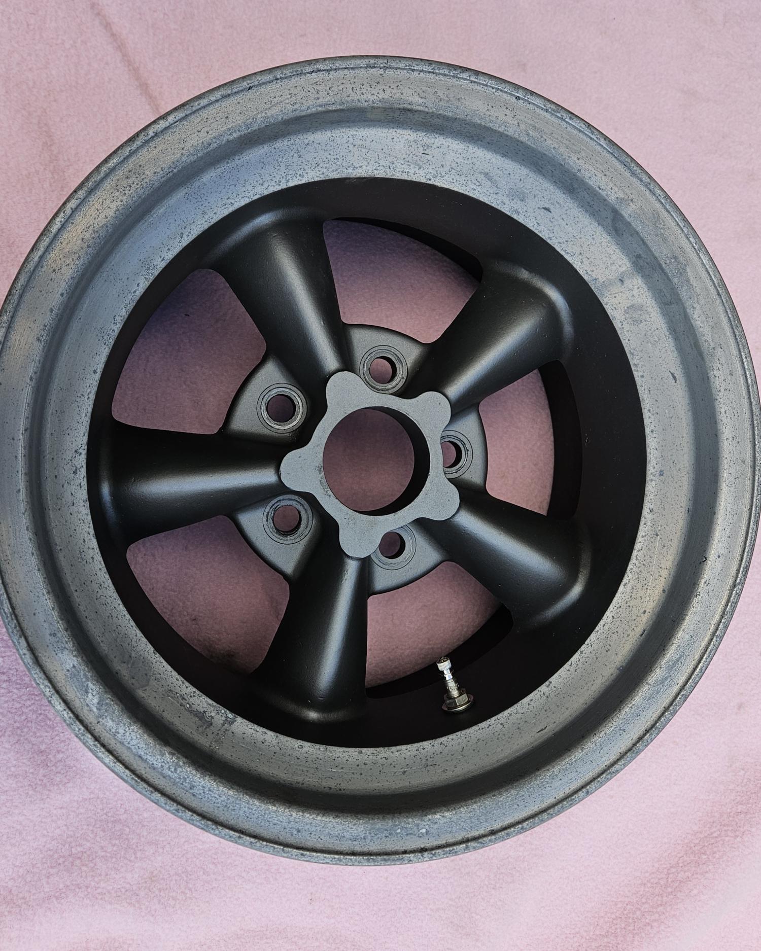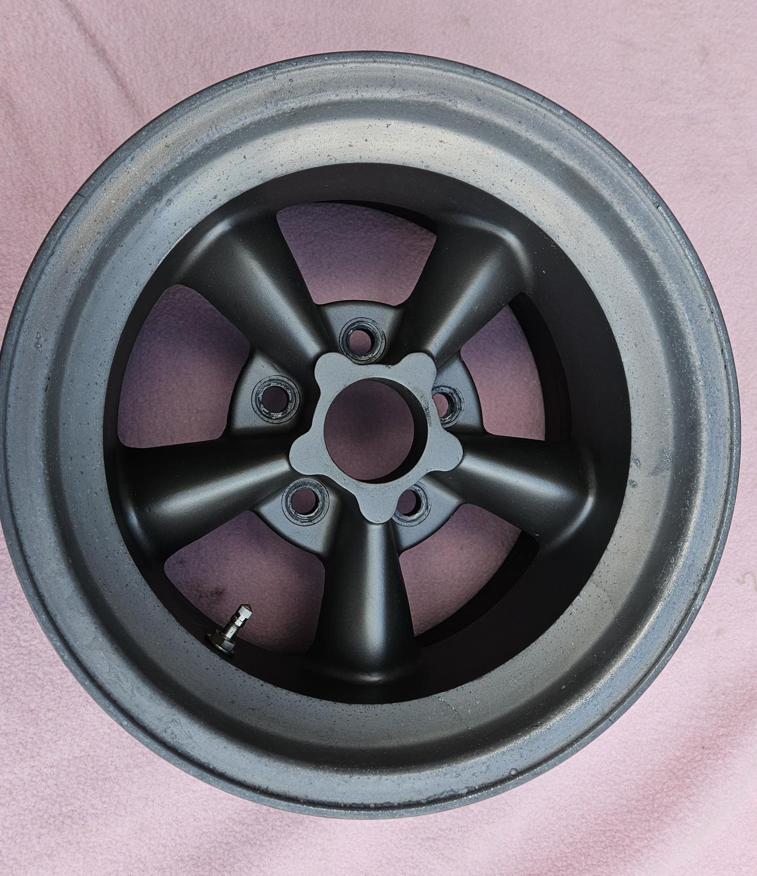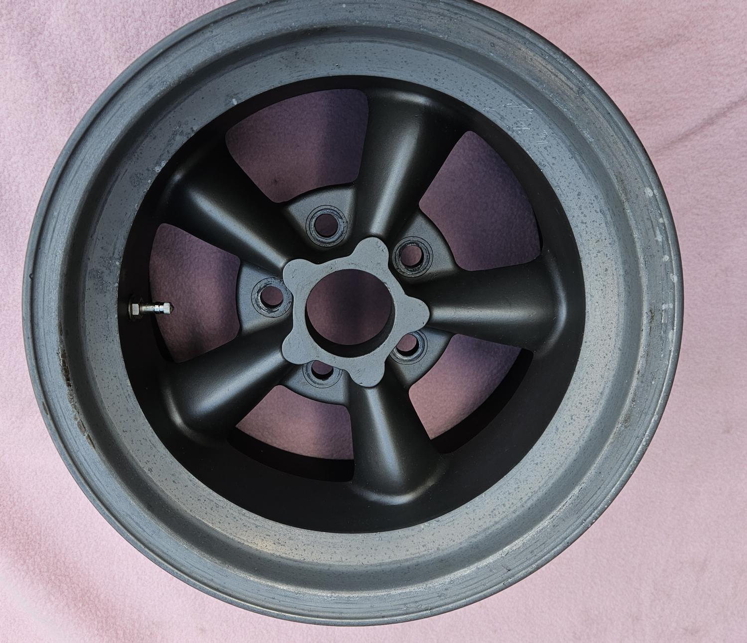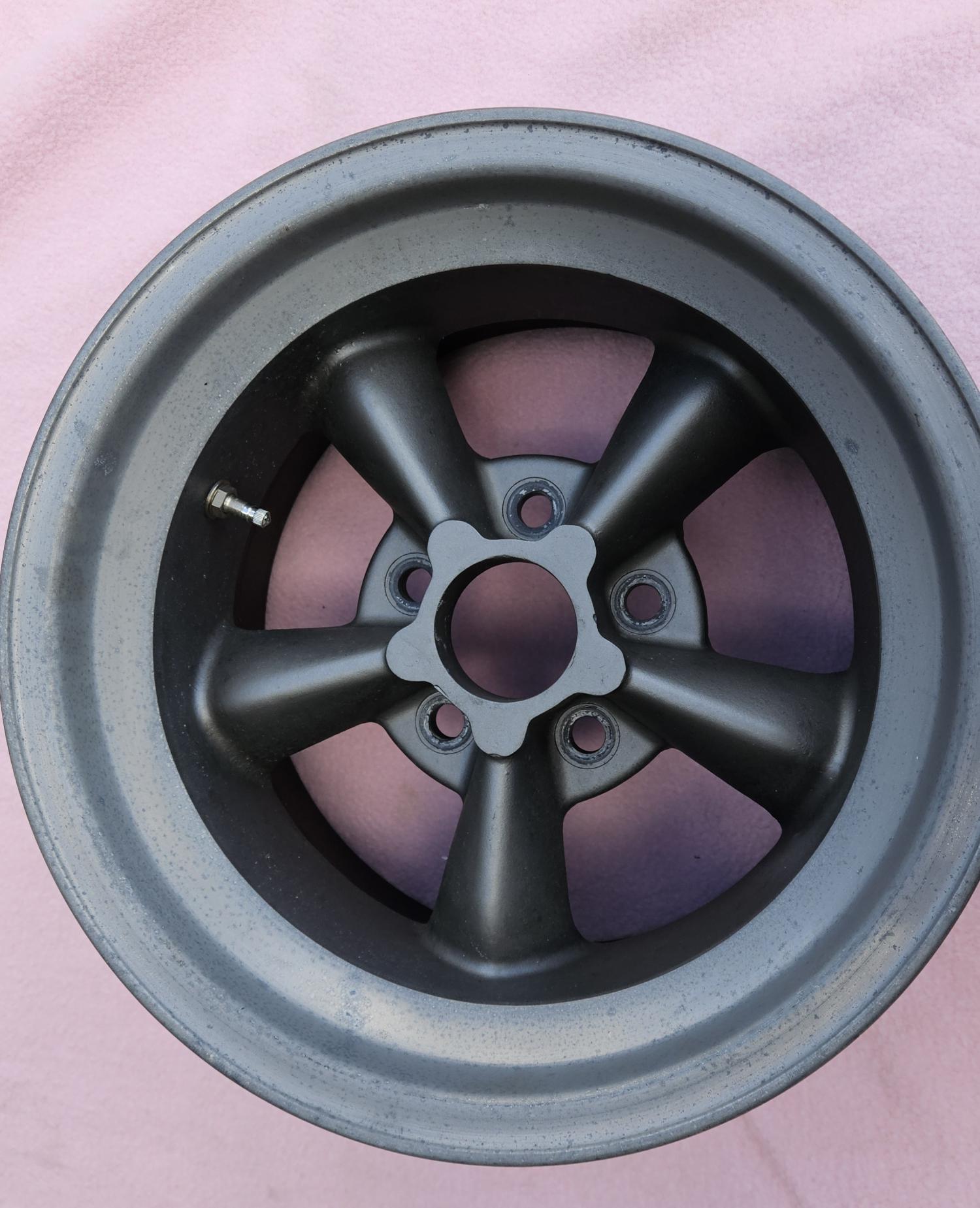 This is a REAL and ORIGINAL set of 4 1960s vintage 15 X 8 1/2 inch MAGNESIUM AMERICAN RACING TORQUE THRUST D wheels. They are 4 3/4 inch bolt circle and a back spacing of 4 inches. Each wheel weighs in at only 14 lbs. This wheel WILL fit a Corvette and WILL clear the caliper WITHOUT a spacer. Were freshened up and checked out by a professional wheel shop about 12 years ago. Outer edge is natural the rest has been sprayed in dark gray. Wheels are perfect for a Corvette or Camaro vintage race car. They are being sold with the assumption that they should be used for show only and not to be raced on. These do not come up for sale very often.