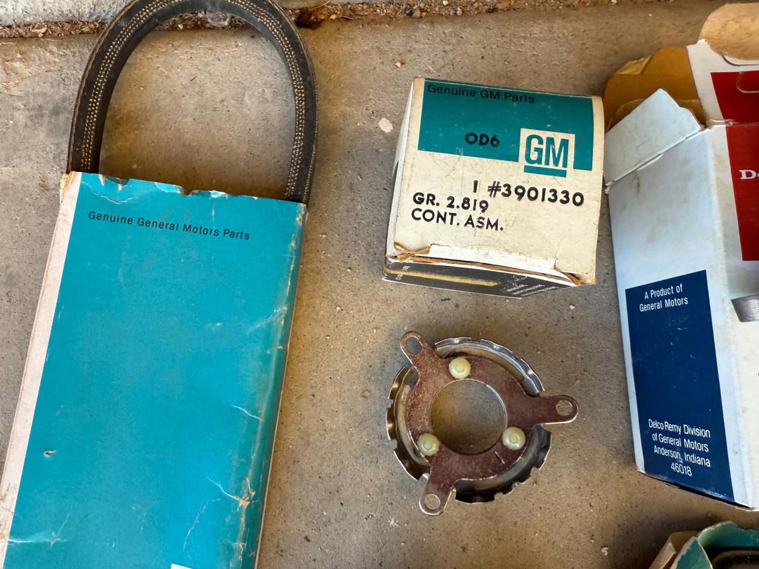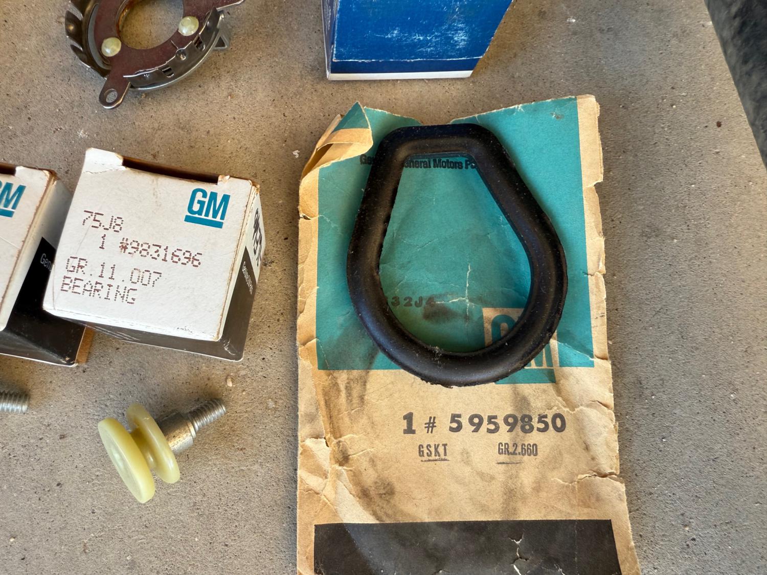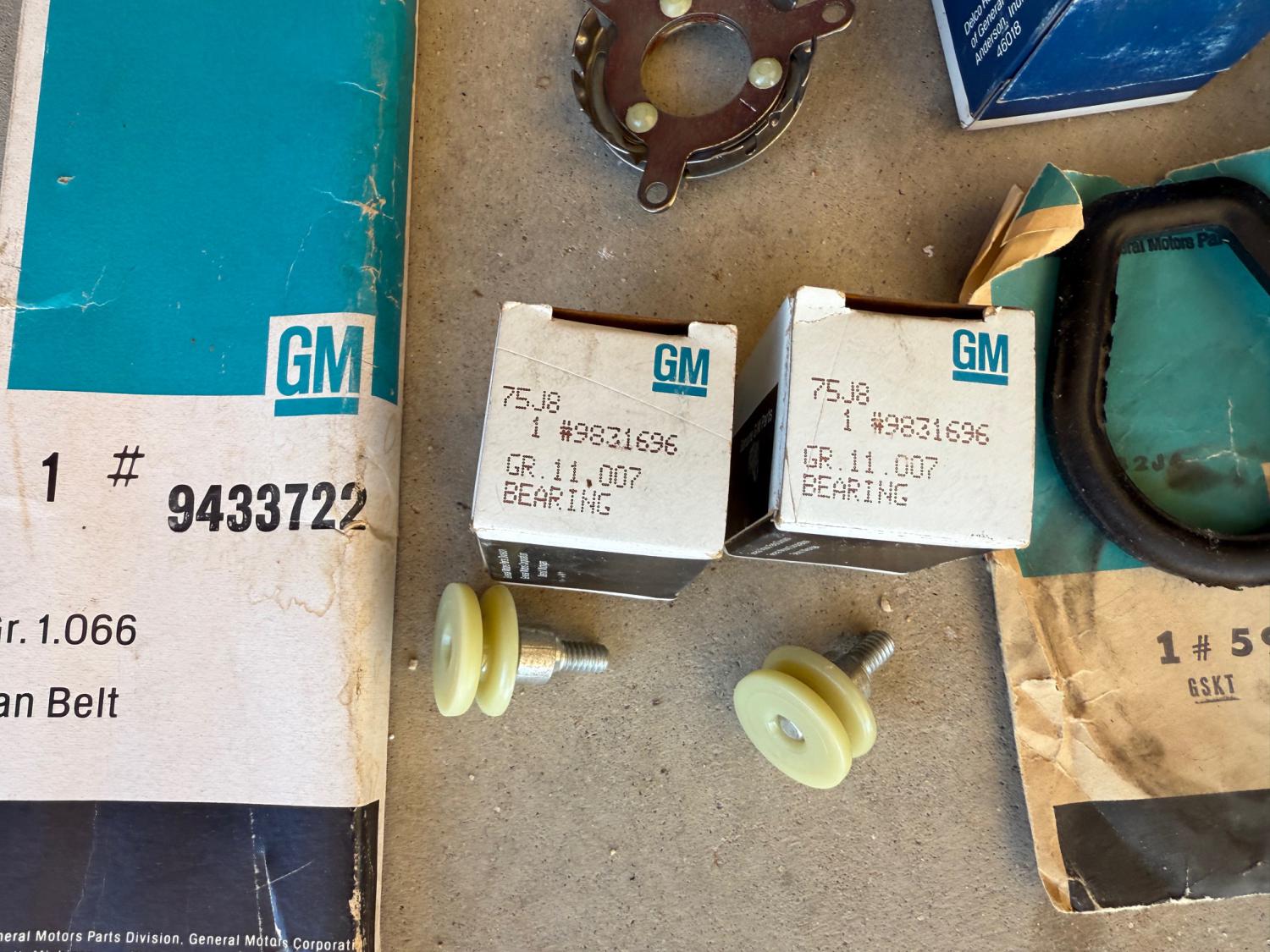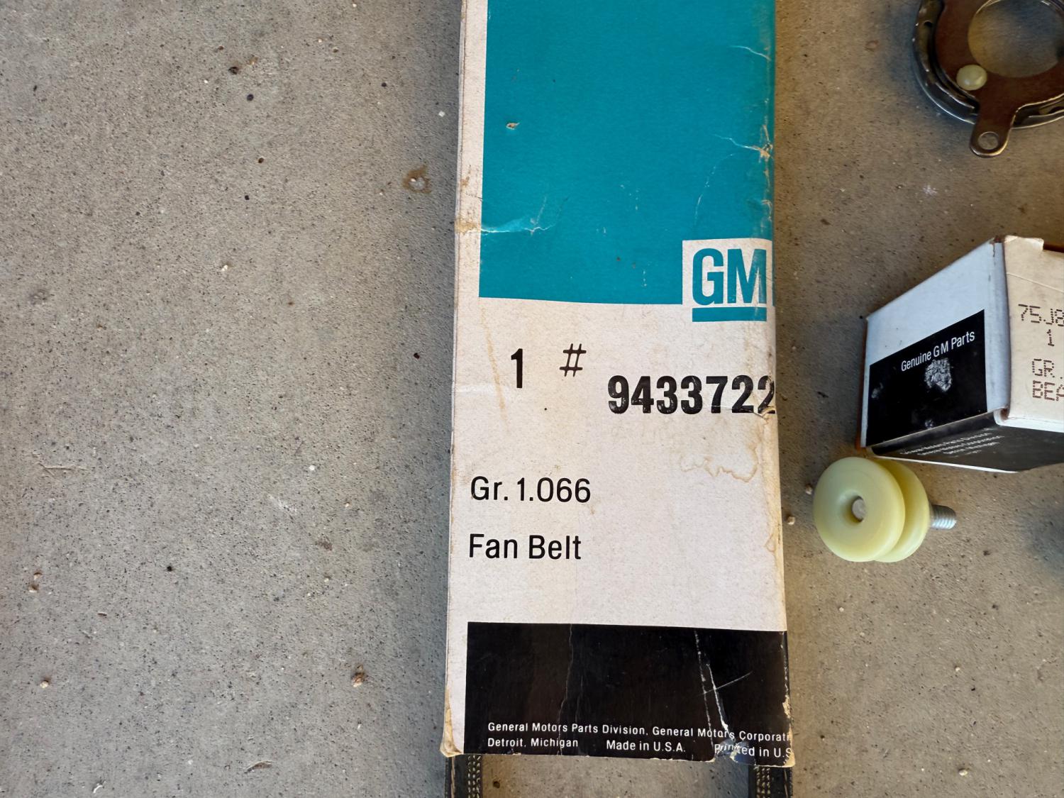 Selling everything shown as one listing. There is a belt 9433722, horn contact 3701330, dimmer 1997037, seal 5959850, radiator hose 3946012RM, and a couple window parts 9831696. The price for it all is 90 ppff shipped lower 48 USA. Larry