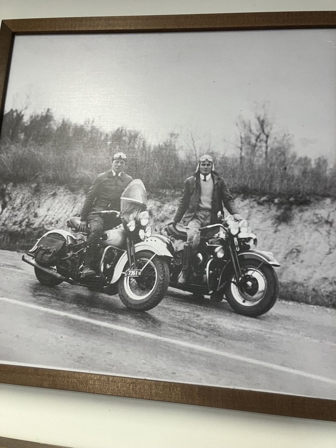 Cool pic. My Dad and Uncle used to ride together until WWII, when they both joined the army. My Uncle came home in '47 and bought a new 74' FL knucklehead. My dad came home in '48 and bought a new 61', EL Panhead but they both got sidetracked with women and got married. My dad sold his in '52 but my uncle kept his and passed it on to his son before he passed away a few years ago.