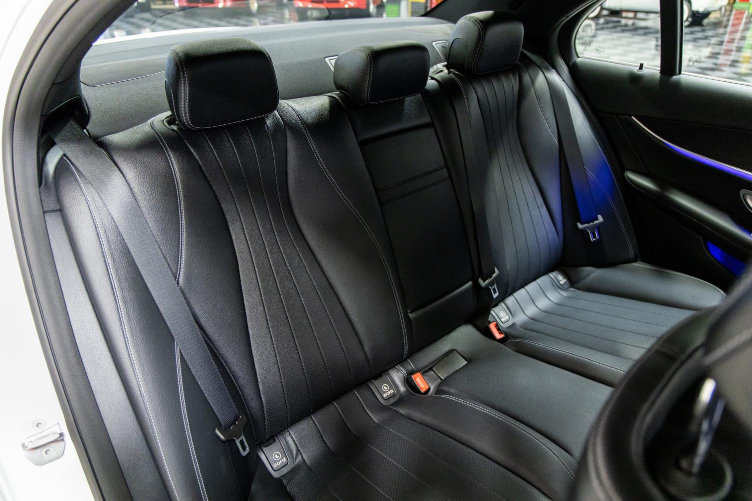 The exterior embodies the Mercedes-Benz “Sensual Purity” design philosophy. The factory E-Class design is both luxurious and sporty. This car retains all the original sheet metal and paint throughout. The Iridium Silver Metallic paint was tested by MS CLASSIC CARS with an electronic paint meter which indicated no prior paint work. The paint is in excellent condition and was recently detailed by the team at MS CLASSIC CARS. Some of the exterior features include perimeter approach lights, rain detecting variable intermittent wipers, light tinted glass with aluminum trim, window grid antenna, body-colored power folding heated side mirrors, chrome door handles, rear window defroster, LED brake lights, rear fog lights. The car is sitting on 19” AMG Twin 5-Spoke wheels that are also in excellent condition. The wheels are mounted to Bridgestone Driveguard Plus 245-40-19 tires that were replaced new in late 2024. The tires have roughly 9,000 miles on them.
