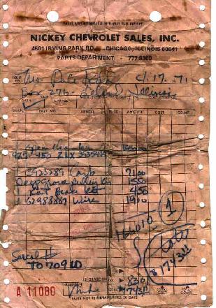The attachment is a photocopy portion of an actual sales receipt from Nickey Chevrolet showing the backwards K. It was used at different times from as early as 67 from the records I have and as late as 1972 (which is what the sales date on this one is) as per what Chris said above....................RatPack...............