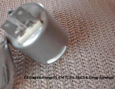 In August on EBAY I bought a NOS 434 TCS solenoid switch from a certain Ed S. who deals quite a few parts from his Floria home. Shortly thereafter the auction a bystander Emailed me his thoughts about my purchase NOT being N.O.S.