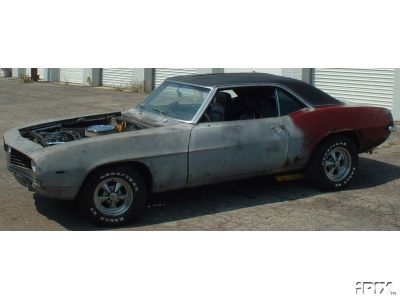 Does anyone know where I can get my hands on a '69 Camaro? I know it's stereotypical, but I really want a '69. A 4 speed would be cool in that! I am somewhat bored with my car, and it's due to the lack of horsepower. Suffised to say, I have absolutely no money to beef up my Camaro (It all went to the looks); all show and no go. Quite some time ago I missed out on an auction for a '69, I think the price was around $3800, and it was even in Wisconsin! I had just bought my car at the time, and there was no way my mother would let me have 2 cars, so I missed out. Here's some pics of it . . .