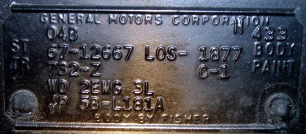 Ya'll are funny sometimes! Interestingly too, as there was another thread here on sYc that discussed the ZZ on a trim tag, here we have a tag with an H stamped up hi into the basic fonts. Anyways,"70 COPO"...LA DID INDEED build these cars and I had a thread here on sYc months ago about LA built cars. Although I am not the authority on what plant AJ's car was assembled at,This car does seem correct to me as the C-1 was used later in the run on these cars, and the one I referred to in a prior post had an 0-1 code on an LA car! That car was a power glide car too alike this one, although when my friend found that one and bought it, it had a complete 4-speed set-up in it! Will have to try to locate that thread again, but...YES! Van Nuys did INDEED build these as well as Norwood!