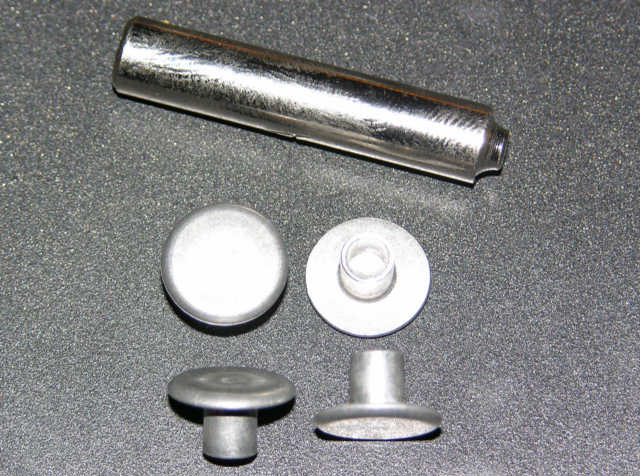 Technically correct rivets used to connect the aluminum grille to the steel reinforcement. Set includes 4 large flat head tubular rivets and the tool to set them.