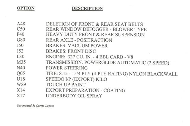I haven't seen very many Chevrolet Exported vehicles,but of the few I have seen,they all had the RPO code ZP-8 listed on their buildsheets.