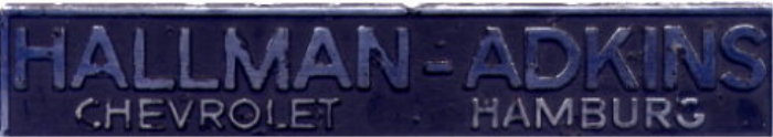 I talked to my brother in NY who actually pulled the emblem and he told me the Hallman-Adkins emblem was from a 71 Vega. There was a bunch of Hallmans in the Chevrolet business in upstate NY including Herb Hallman from Olean NY who left Olean in the late 60s and opened a Chevy dealership in Reno Nevada until the 90s. We lived on the main drag and used to do a family walk on Sunday evenings and used to look at the all new 67 Camaros in the showroom. I remember there was a RS SS in the front and I have been a Camaro lover ever since.