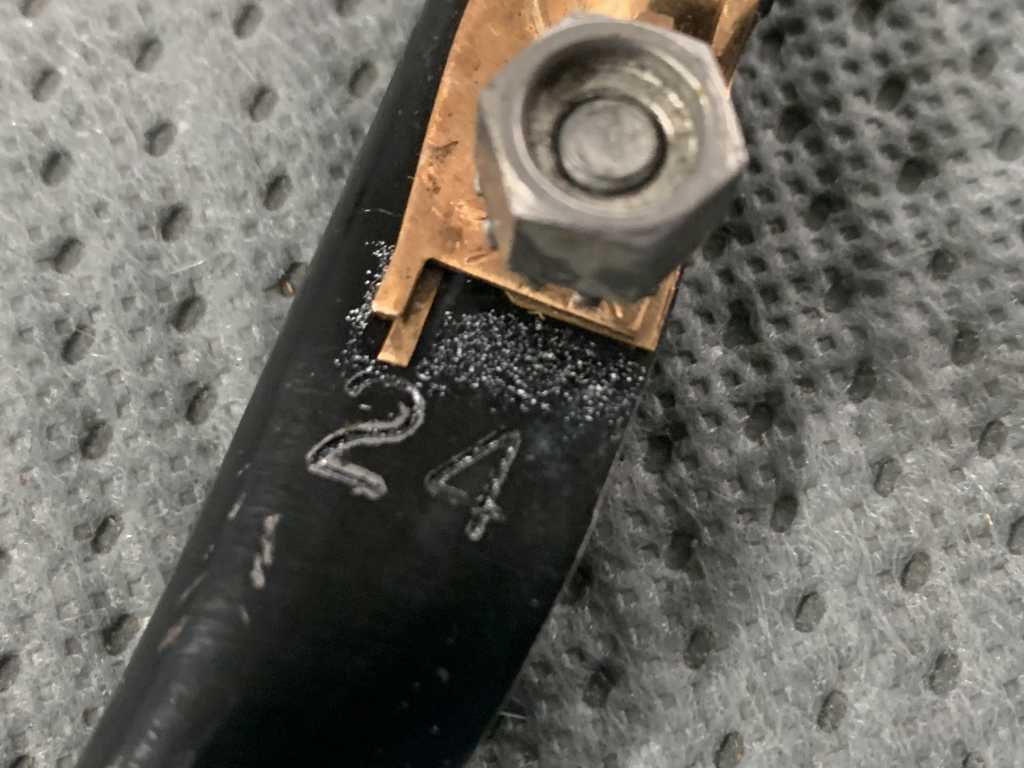 Photo 321 - 327 - What’s left of the white stripe, then oddly enough what appears to be remnants of a stenciled part number but unable to make it out completely and then at the end of the stencil is the remains of the orange stripe.
