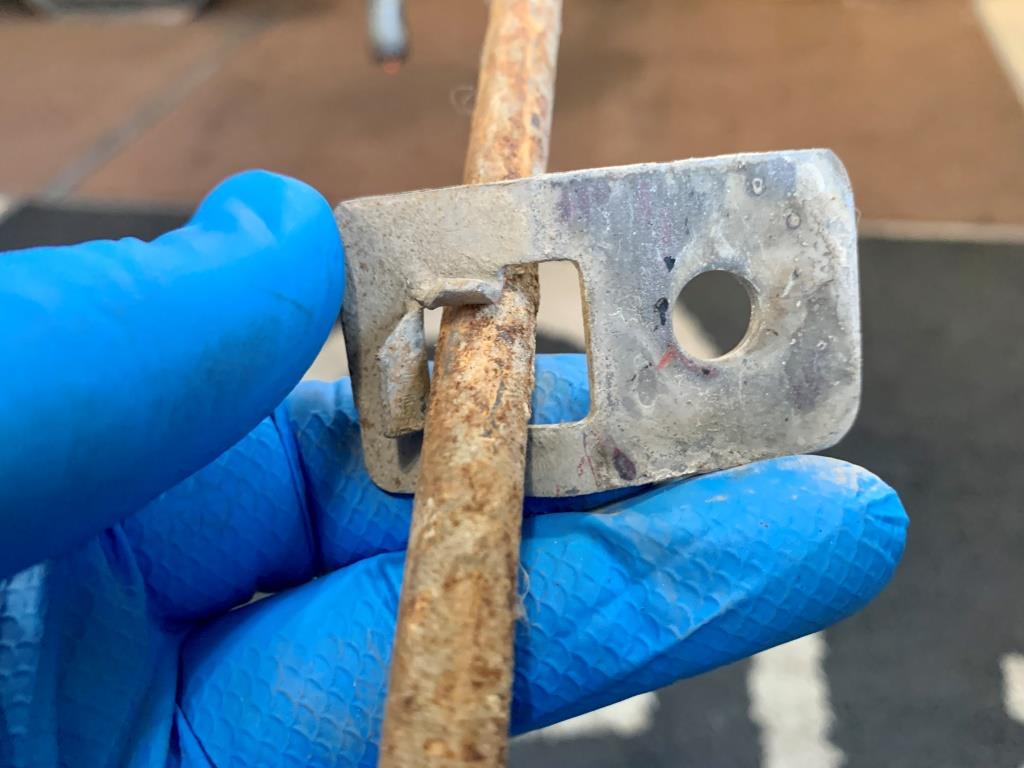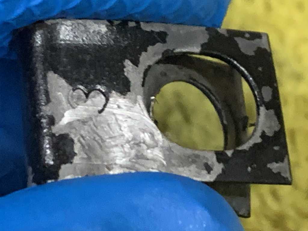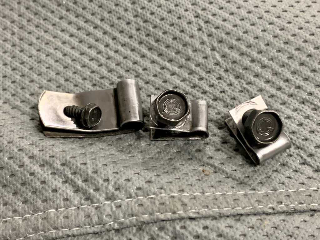 Photo 329 - 331 - Clips and bolts before removal of paint showing detail of stamped “3” and then after cleaning.