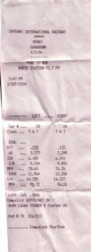 What a weekend....What a race!!! What I would really like to mention about the race and the show in general was how close of a family this group is. I had never met Brian Henderson (bkhpah) until Thursday when he greeted our truck with the biggest smile at the entrance of the Thursday night gathering. After I made a few practice runs on Friday I had my hood open and Shonye had noticed that my water pump was going bad. I still made another practice run and after that one it was realized that I had rolled my belt and that the pump had gotten worse. At that point it was completely evident that I should not race anymore or risk my fan going through the radiator, hood, or causing some really extensive damage. Brian had walked up and tool a look and said that I definitely should NOT race anymore. All of the sudden he said if I got a water pump he could change it out quick. I was shocked that such an offer was made. All of the sudden I had a Belair Bob throw me the keys to his rental and Joey & Erik Barr volunteering to go with so I would not forget any of the things needed to have the pump changed. After getting the parts which BTW even Charley had sent out for a fuel pump that he had delivered: Brian Henderson, Joe Sweezy, and Joey Barr tore that car apart and changed that pump so quickly that my head spun. They worked lightning quick in the Sahara Desert equivalent heat sweating bullets, on there backs, getting dirty, etc. I did go on to win the shootout because of those guys efforts and for that I will be in debt to you fellas!