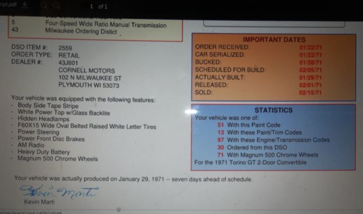 Shaker, 351 4 barrel, 4 speed, AC, PS/PDB, am/fm, factory ribbon tach, one of 26 according to Marti.. It was in the Hershey AACA museum in 2010. This car drives like a dream.