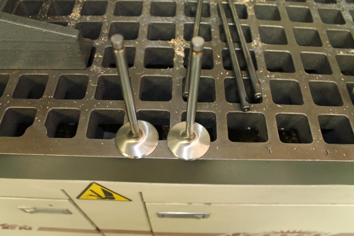Finished welded 840 head, 1.80 exhaust valve, 2.250 Intake valve, 11/32 stem. Peak flow was 365 CFM short port and 370 CFM long port, 260 CFM exhaust port @ 28 inches, 109 CC combustion chamber.