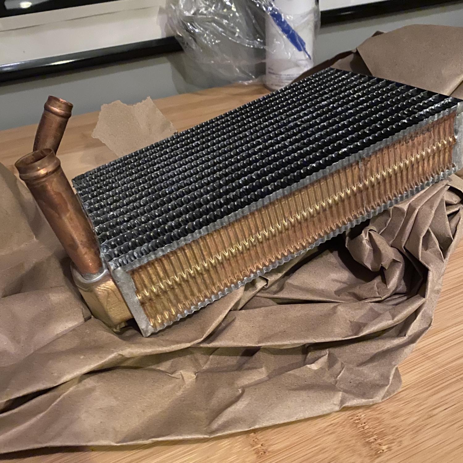 Just following up on this thread. I purchased 2 brass cores from Classic Industries and sent them to a friend’s shop to install them along with a few other parts. When they opened the boxes, Classic had sent aluminum cores that looked nothing like the one that was in the car. Unfortunately, they had already installed the core before they sent the first pic below, so I asked them to remove it and put in another or fix the original. Anyway, it appeared that the original core was not leaking and the mechanic thought it was a tiny crack in the hose that was causing the leak. So, we put the old core back in and they changed the hoses. After about 25 miles, it’s leaking again, so I bought another core and new correctly marked hoses (they were out of stock during the last repair).