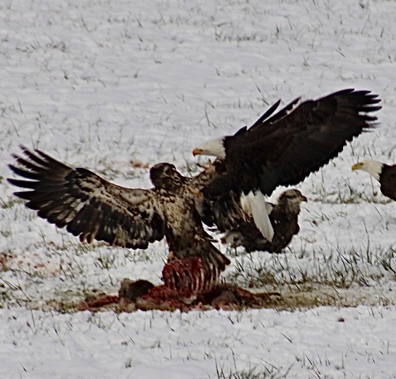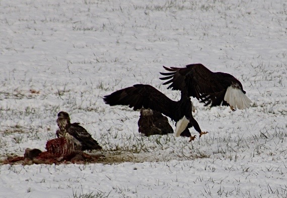 Had a road kill overnight out front and an eagle came along and claimed it from the Crows.