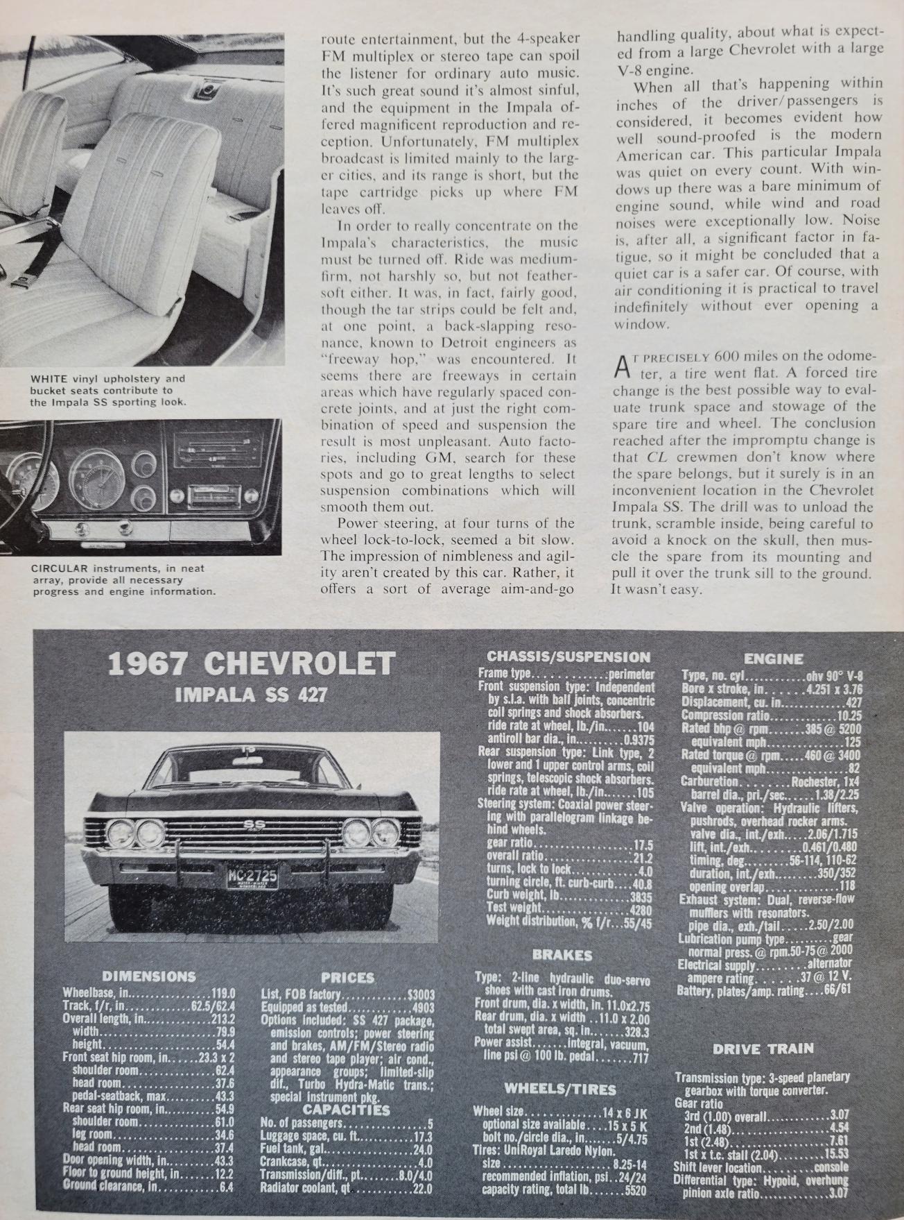 1967 Dana 427 Camaro Road Test, Car Life April 1967