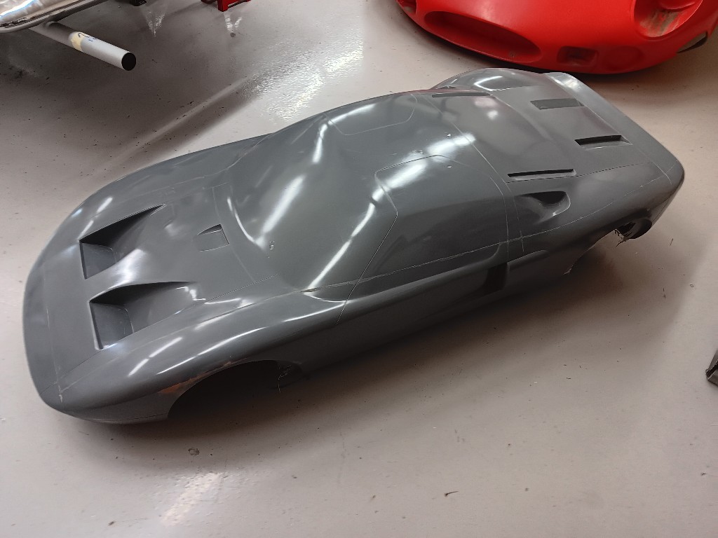 These were 1/4 models made by Saleen and scanned off the real body so they're 100% true to form on the first series of Ford GTs. These were destined to be coffee tables and painted in the customer's color to match their car. The molds were crushed and only about 20(I think) of these were made. The bodies Gordon had were the last two and this was the last raw one left in existence. Of course, not knowing what I'd do with it, I had to have it. I had just enough room for that in the back of the uhaul after loading up the 250 GTO body.