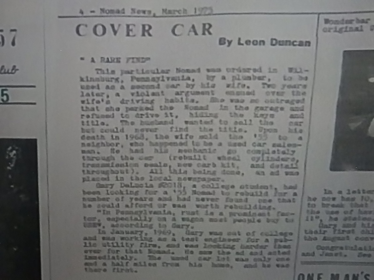 Here is some history on the Nomad, it was ordered new in Wilkinsburg, PA by a plumber, to be used as a 2nd car for his wife, 2 yrs later, a violent argument ensued over the wife's driving habits. She was so outraged that she refused to drive it, hiding the keys and the title. The husband wanted to sell the Nomad but could never find the title. Upon his death in 1968, the wife sold the "55 to a neighbor, who happened to be a used car salesman. He had his mechanic go completely through the car, rebuilding the wheel cylinders, transmission seals, new carb kit, and detailed throughout. All this being done, an ad was placed in the local newspaper. Gary Delucia age 18, a college student, had been looking for a "55 Nomad to rebuild for a number of years and had never found one that he could afford or was worth rebuilding. In PA rust isa prominent feature, especially on a wagon most people buy from new. In Jan 1969, Gary was out of college & was working as a test engineer for a public utility firm & was looking harder than ever for that Nomad. He saw the ad & called immediately, the car lot was only 1 1/2 miles from his home & he was there first. In a letter received Feb 6th, Gary says he now has 10,100 miles on the odometer, (I believe this was 1977 when the article was in the 1977 issue of Chevroland Nues. Gary hated to break that 10,000 mile barrier but what's the use of having a Nomad if you do not drive it. Gary & his wife are expecting their 1st child in July & hope to attend the August Convention in Memphis. Chevroland Nues 1997 Issue: Since this is our "1955 Issue" we are also featuring another "SUPER RARE" 1955 Chevrolet Nomad that is owned by Gary Delucia of Pittsburgh, PA with only 11,000 original miles on the odometer, the car is completely original including the original U.S. Royal tires. Gary purchased the Nomad 8 years earlier in 1969 w/5600 original miles from a used car lot which got it from the little old lady. The Nomad had been stored from 1957 to 1968 in a heated garage due to a family dispute. The Nomad had the original U. S. Royals, radiator hoses, paper over the inside sun visor & still even smelled like a brand new car. According to Gary, the most difficult part of owning this Nomad is resisting the temptation to drive it everywhere, so he is looking for another Nomad now to drive to shows & meets. He wants to keep the "CHUBBY CHECKER", as his friends call the Nomad, since it resembles a yellow Checker Cab, for Nomad meets & special events only. His wife has a fit every time he drives it around the block, and only a divorce would allow him to part with the Nomad. Send a PM or you can call me anytime from 6 AM to 11 PM EST. seven one seven, three four eight, twenty four twenty four. Price: $120,000 Last edited by 69L78; 10-15-2023 at 11:45 AM. Reason: adding more info & photo's |
