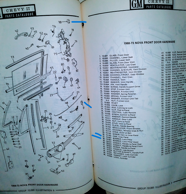 Hopefully someone has an original 68 nova. Does anybody have a picture of what the retaining nuts look like that attach the trunk emblem from the factory on a 68 nova? Also on the front parking lights the screws that bolt it to the bumper. Lastly the rubber bumpers that fit on the door that attach to the door there seems to be a bigger one and a small one not sure if one is the upper or lower.